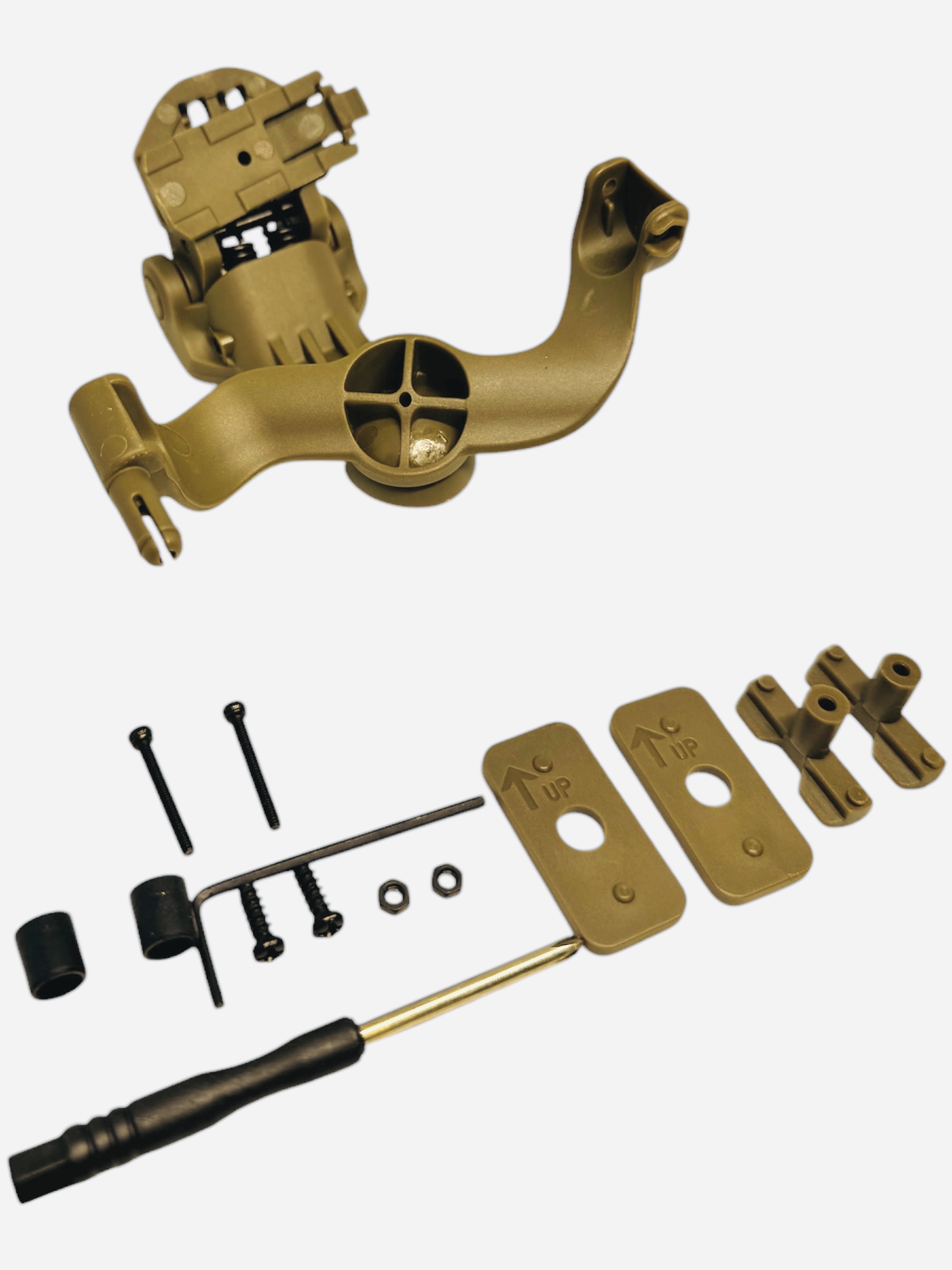 ✔️ Совместимость с современными рейками и шлемами: подходит для ARC Rail, M-LOK, рейки системы Team Wendy и др.; легко монтируется на шлемы FAST, TOR-D, ARCH — без переделок, минимальные усилия при установке.