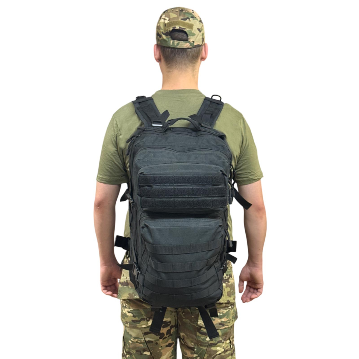 Тактический рюкзак с системой MOLLE, чёрный (объём 45–50 л)