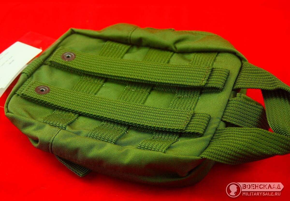 Материал плотный прорезиненный, за счет покрытия поливинилхлорида — водонепроницаем, устойчив к действию кислот, щелочей, бензина, керосина и растворителей. Система крепления MOLLE, на липучках, замок — фастекс.
