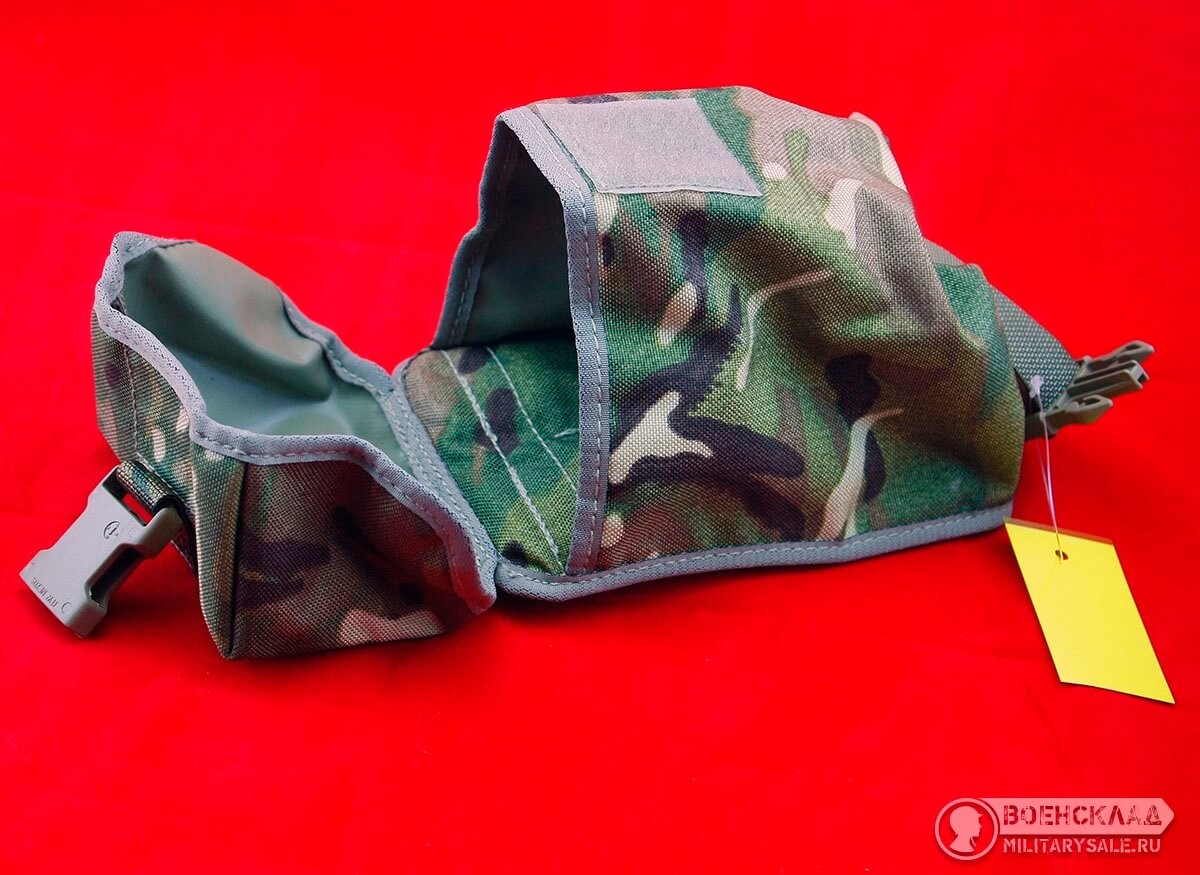 Крепится на тактическое снаряжение по системе MOLLE, на липучках, замок — фастекс.
