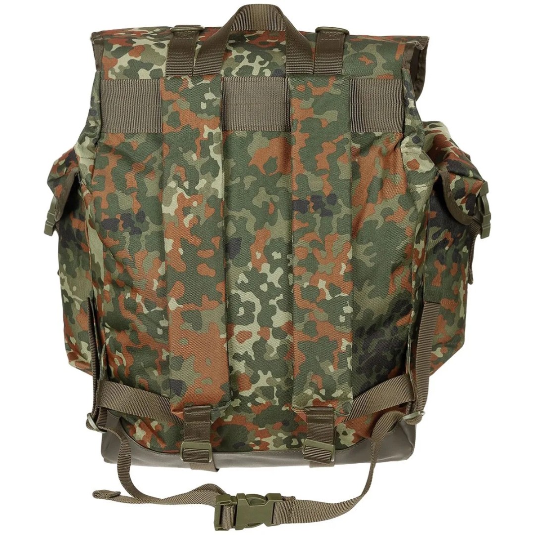 Водостойкий и многофункциональный горный рюкзак от фирмы MFH был разработан таким образом, чтобы обеспечить максимальный уровень комфорта и долговечности, что делает его идеальным выбором для использования на открытом воздухе. Рюкзак оснащен большим грузовым отделением, которое крепится с помощью шнура и клапана с 4 пластиковыми D-образными кольцами, точками крепления MOLLE и двумя регулируемыми быстросъемными пряжками, а также внутренним карманом на рукаве, который крепится с помощью двух лямок с застежкой на крючок и петлю. Кроме того, сумка оснащена двумя большими внешними карманами с клапаном и быстросъемными пряжками, а также выдвижными отделениями за ними, прочным усиленным дном из водонепроницаемого ПВХ, регулируемыми плечевыми ремнями с мягкой подкладкой, съемным поясным ремнем и ручкой для переноски.