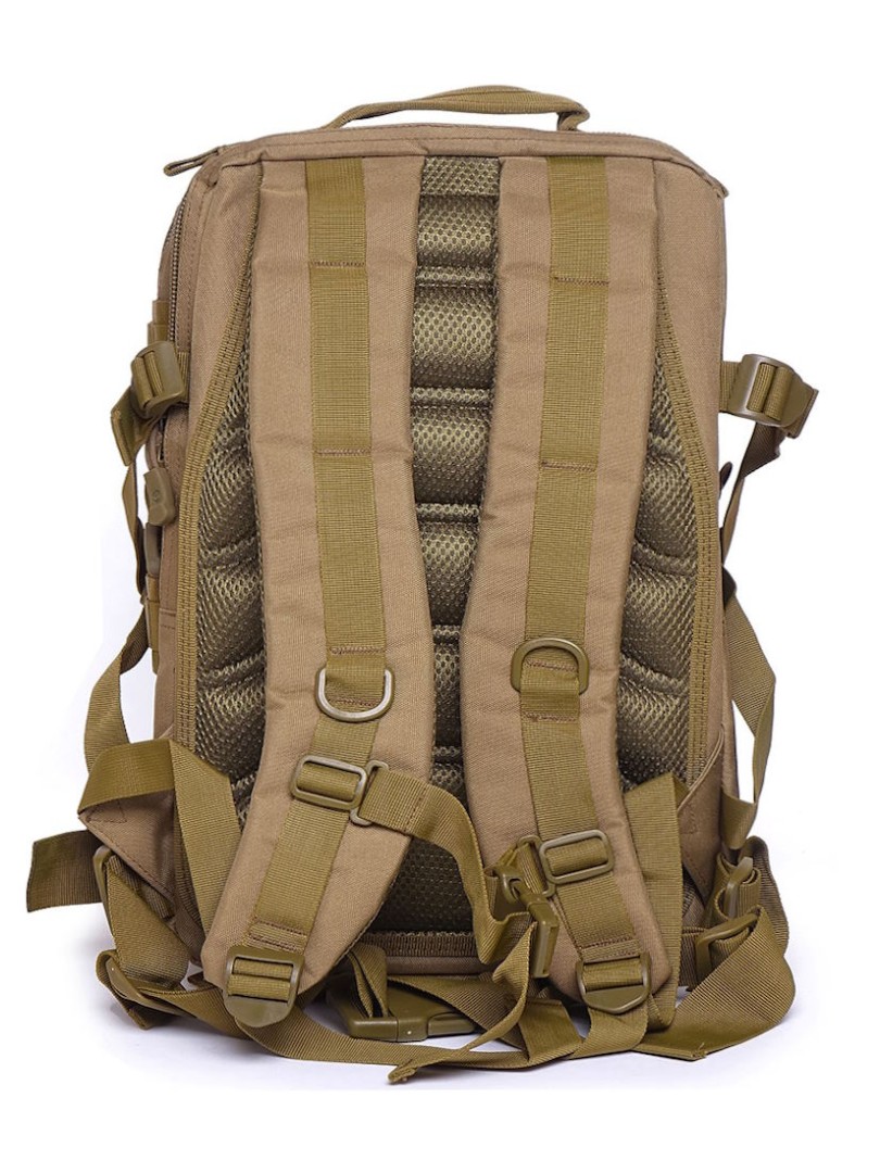 Спинка рюкзака полужесткая, с хорошей вентиляцией и рельефными подушками, обеспечивающими отвод тепла. Материал изготовления — прочный армейский Oxford 600D с водоотталкивающей пропиткой и PU-покрытием. Фурнитура Mr. Martin включает надежные молнии с металлическими бегунками, прочные пластиковые фастексы и полукольца.