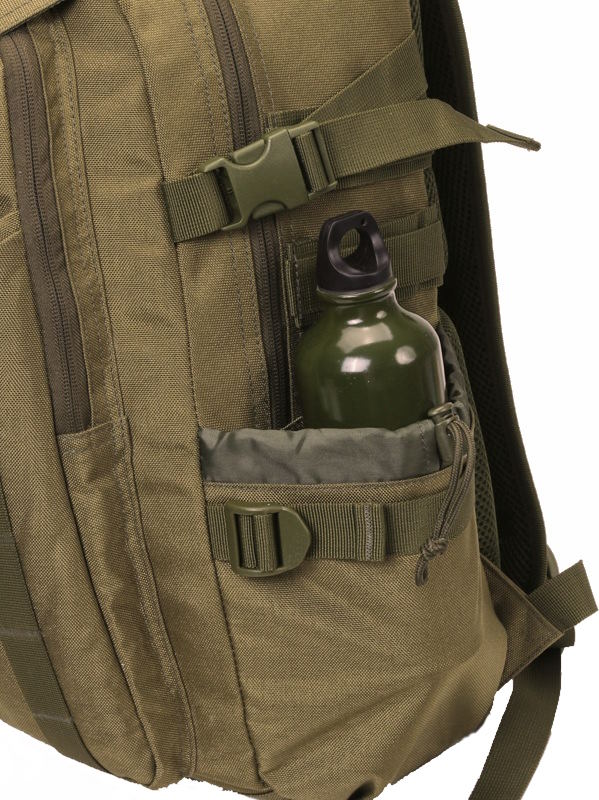 Боковой карман на молнии (18×14 см) с системой крепления МОЛЛЕ (3 ряда по 3 ячейки) для модульного размещения дополнительного снаряжения.