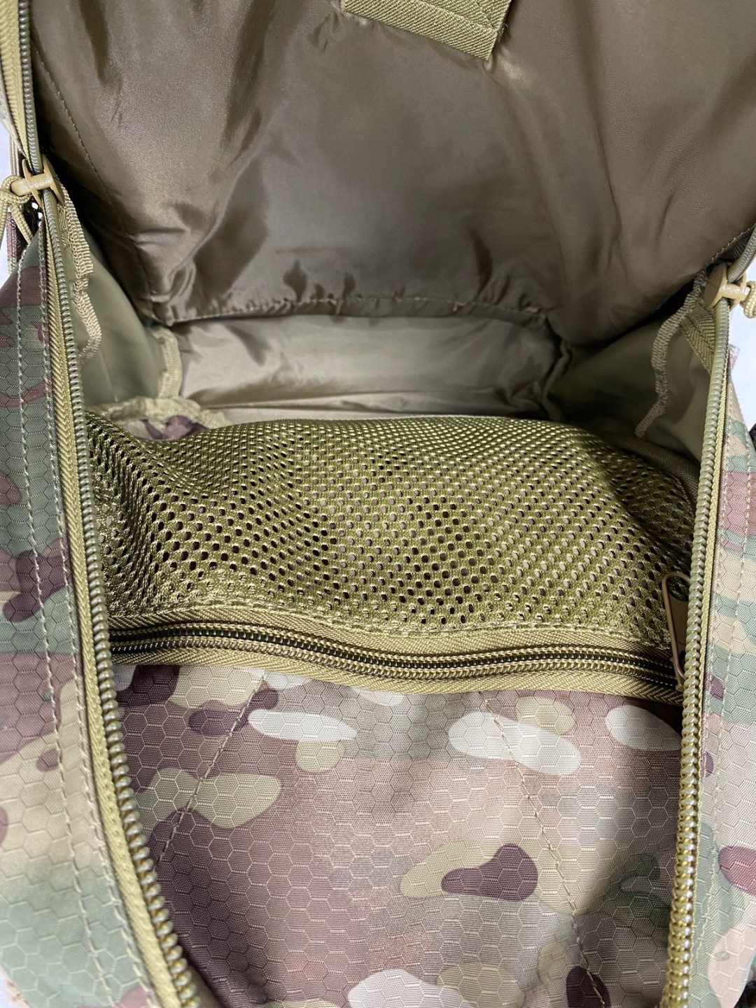 Тактический рюкзак GHOST II HEXAGON BACKPACK размером 47х26х22 см с общим объемом 25 литров представлен в камуфляжной расцветке мультикам. Он идеально подходит для походов, городских прогулок и использования в условиях повышенной влажности, обеспечивая надежное решение для туристических вылазок на 24-48 часов. Основное отделение рюкзака объемом более 20 литров оснащено высококачественной круговой молнией на 180°, которая позволяет быстро получить доступ к содержимому с любой стороны.