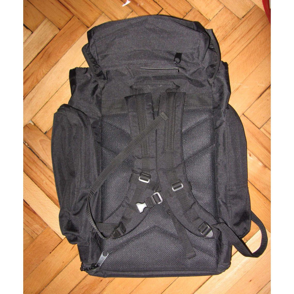 На верхнем клапане и на днище - дополнительные карманы на молнии.