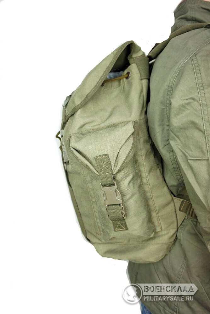 Два внешних кармана, фиксируются застежками фастексами. Боковые карманы пришиты только по краям, благодоря этому можно крепить снаряжение например - топор.