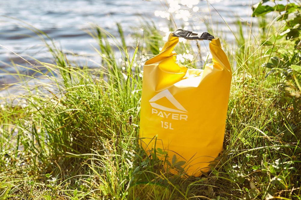 Гермомешок из очень прочного, современного материала – тарпаулина с ПВХ покрытием, который начал завоевывать российский рынок четверть века назад. Тарпаулин переводится как водостойкий брезент, и его название говорит само за себя. Гермомешок отлично подходит для водных видов спорта, велосипедных прогулок, спелеопоходов или пляжного отдыха. Его можно использовать как вкладыш в рюкзак или как самостоятельный элемент экипировки. Герметичность обеспечивается за счет скрутки горловины и фиксации ее с помощью фастексов (полуавтоматических застежек). Оснащен двумя съемными лямками для транспортировки.