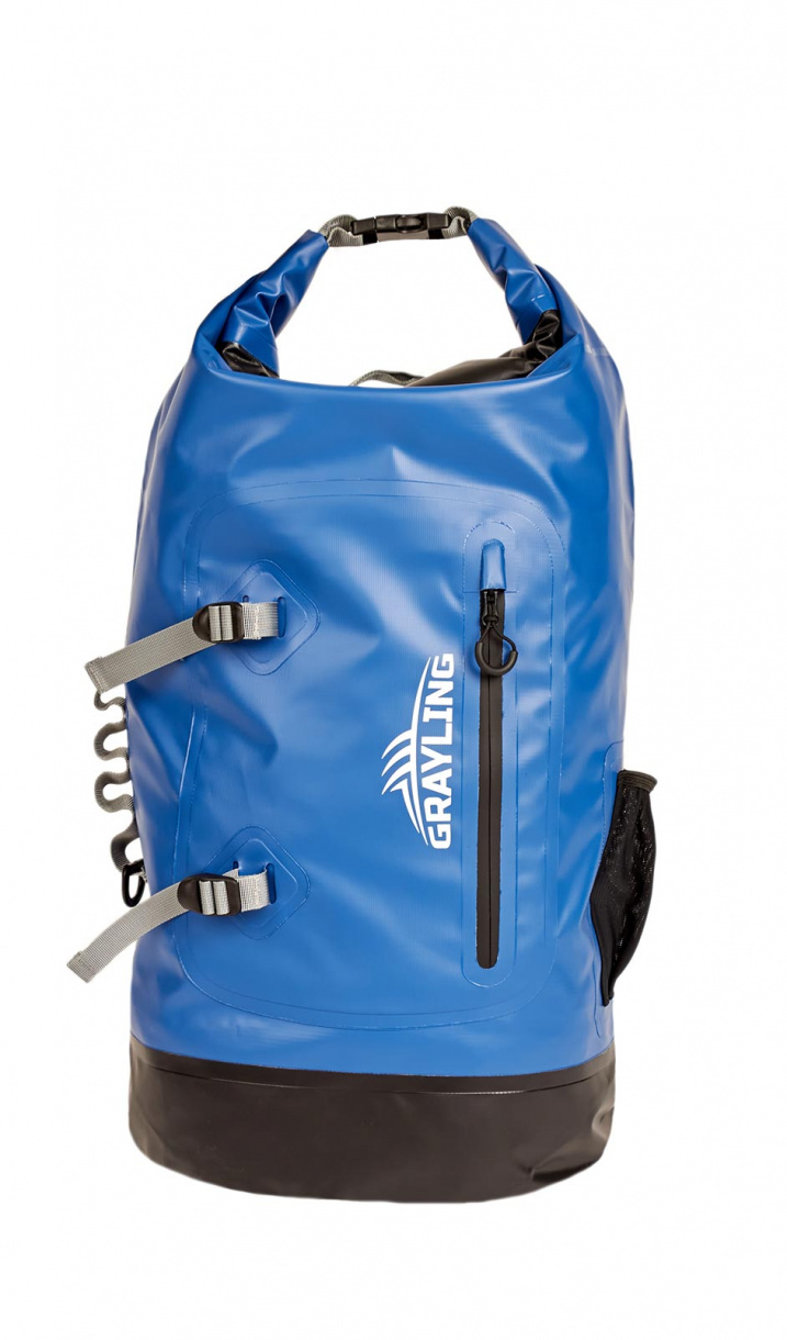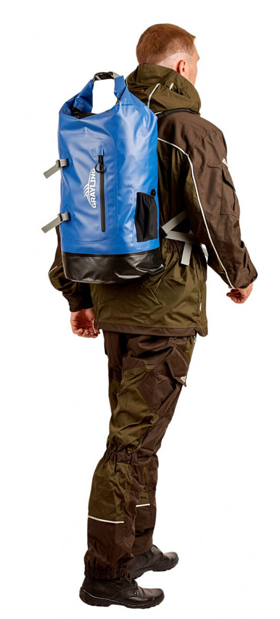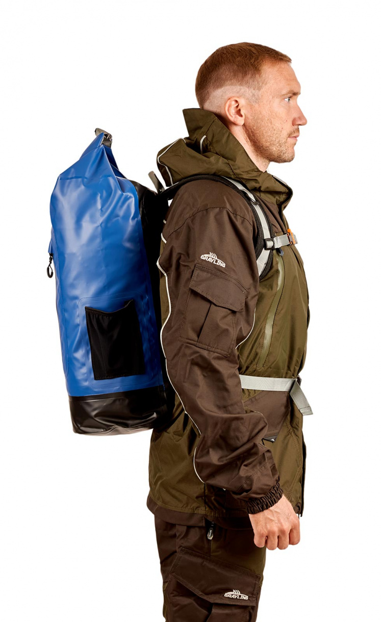 Вместительный герморюкзак для рыбалки. Абсолютно незаменим в дождливую погоду, а также на забродной рыбалке. Обеспечивает полную герметичность за счет скрутки верхней части гермомешка и фиксации ее на фастексе. Очень прочный современный материал тарпаулин с ПВХ покрытием. Оснащен удобной вентилируемой спинкой и широкими наплечными лямками. На фронтальной части имеются стропы для крепления тубуса. Имеет Накладной карман с влагозащитной молнией и боковой сетчатый карман