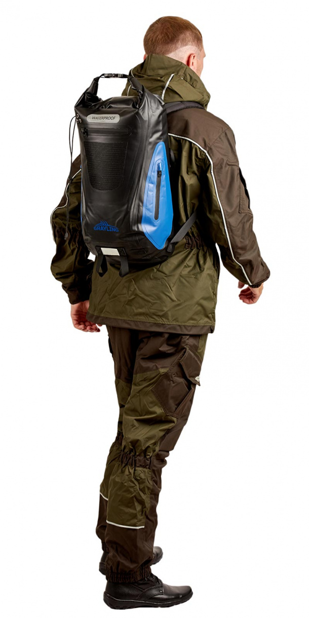 Вместительный герморюкзак для рыбалки. Абсолютно незаменим в дождливую погоду, а также на забродной рыбалке. Обеспечивает полную герметичность за счет скрутки верхней части гермомешка и фиксации ее на фастексе. Очень прочный современный материал тарпаулин с ПВХ покрытием. Оснащен удобной вентилируемой спинкой и широкими наплечными лямками. Имеет внешний карман из сетки, дополненный утяжкой и прорезной карман с влагозащитной молнией. Рюкзак оснащен светоотражающими элементами.