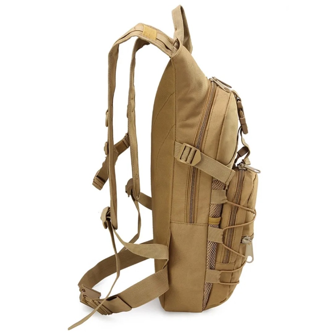 Тактический рюкзак для питьевой системы - это компактный и удобный рюкзак. Он оснащен вентилируемой прокладкой, которая обеспечивает комфортную носку в любую погоду. Рюкзак имеет 3 отдела, включая основной отдел на 15 литров, второй для не больших вещей, таких как зонтик, и малый отдел для ключей или телефона. Благодаря своей компактности, рюкзак легко поместится в багажник автомобиля или в камеру хранения на поезде или самолете. Кроме того, рюкзак совместим с питьевой системой, что позволит вам удобно пить воду во время активного отдыха без необходимости останавливаться и искать бутылку с водой в вашем рюкзаке. Изготовлен из высококачественного материала нейлон 800D, что гарантирует его долговечность. Есть несколько отделений на молнии. Рюкзак имеет скрытую удобную ручку и прочную застежку. Легкий, но в то же время выдерживает сильные нагрузки. Может быть использован как городской аксессуар.