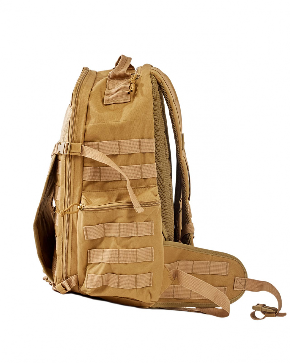 Универсальный тактический рюкзак малого объема. Рюкзак оснащен системой Molle/PALS для крепления подсумков, а также совместим с питьевой системой. Боковые утяжки с фастексами обеспечивают регулировку объема. Рюкзак оснащен эргономичной спинкой с широкими наплечными лямками и поясным ремнем. Имеет основное объемное отделение, передний прорезной карман, два боковых кармана на молниях, возможность крепления шлема или объемных вещей во внешнем открытом кармане на фастексе. На передней части рюкзака предусмотрено место для крепления шеврона. Все рюкзаки выполнены в цветах коллекции своего бренда. Это значит, что покупатель сможет легко комбинировать наш рюкзак с другими изделиями и аксессуарами.