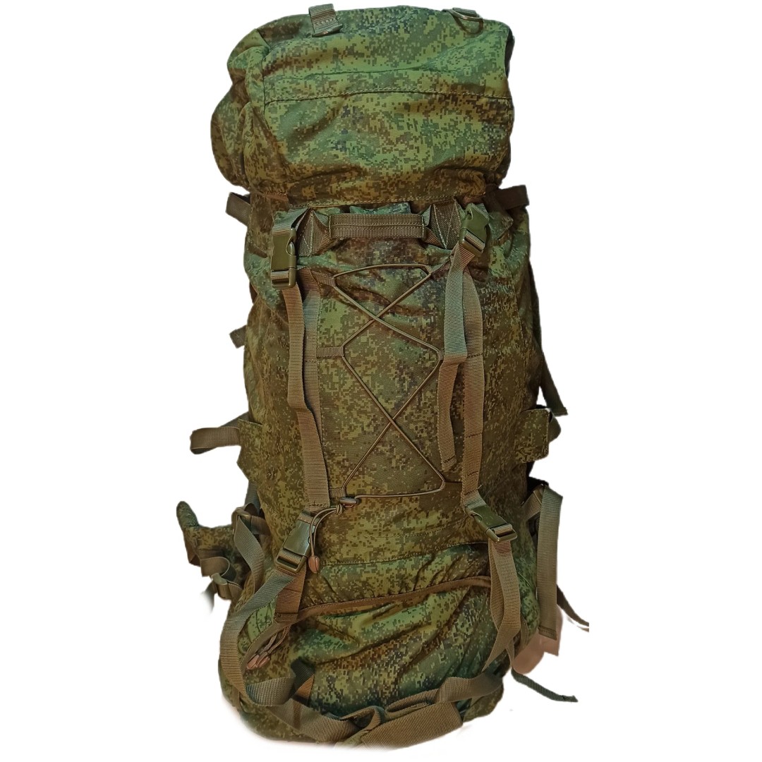 Рюкзак уставной армейский для спецназа. Альпинистский . Расцветка-цифра. Объем 80+20л. Размеры: 32 см x 25 см x 88 см. Рюкзак объёмом 80 литров с возможностью дополнительного увеличения объёма до 100 литров. Рюкзак с жёстким алюминиевым каркасом со стороны спинки, со множеством различных карманов и системой стяжек. Вес рюкзака 2660 грамм. В комплекте с маскировочным чехлом белого цвета. — рюкзак - ткань полиэфирная камуфляжной расцветки- цифра, с ПУ покрытием, арт. 3451 (ТУ 858-5799-2006);