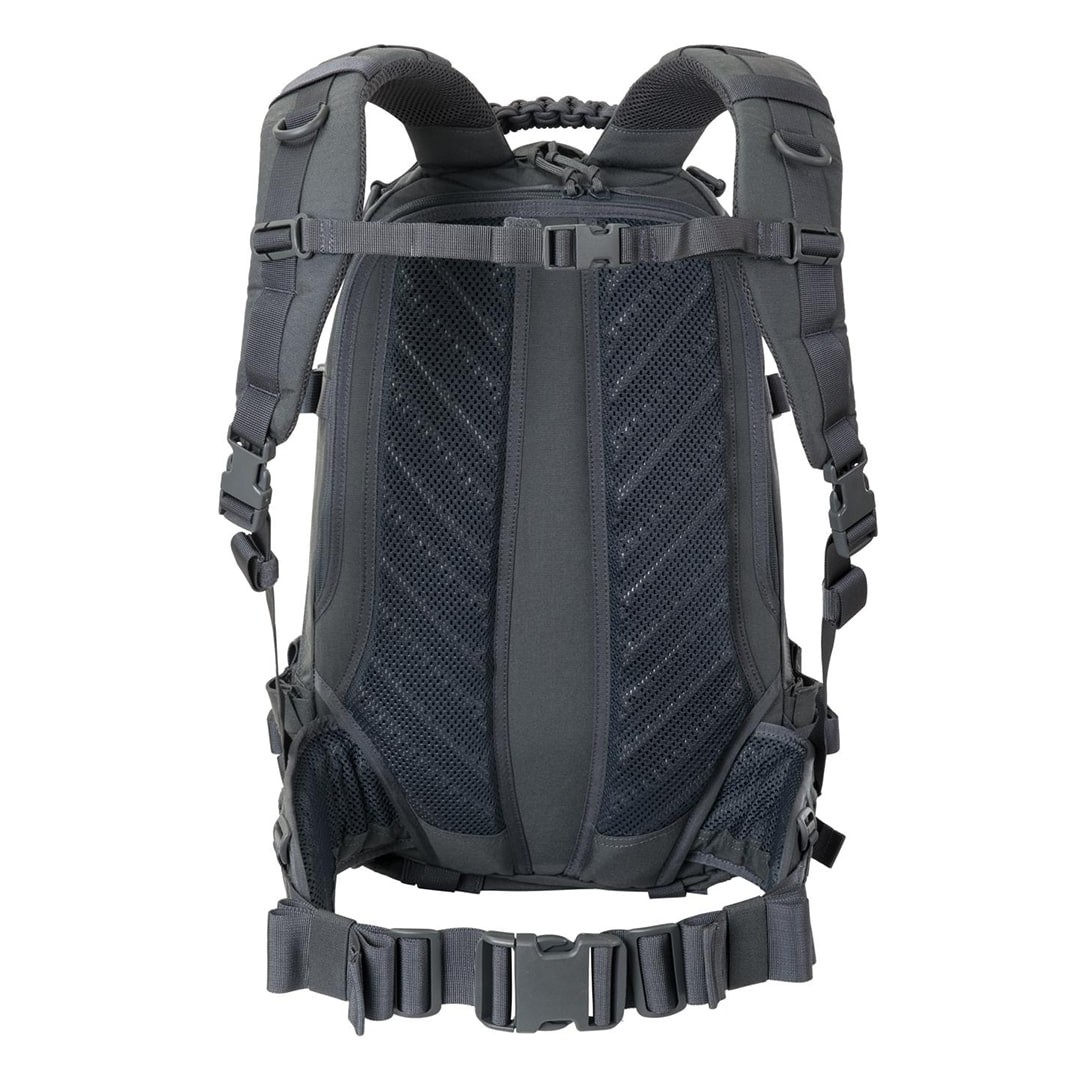 Дополнительные боковые карманы могут переносить небольшие и плоские предметы. Laser-cutted система совместима с MOLLE/PALS, это делает рюкзак не только полностью модульным, но также поддерживает низкий профиль рюкзака. Благодаря яйцевидной форме рюкзак имеет меньшую высоту и ширину, чем другие подобные рюкзаки, что делает его более комфортным и дает возможность носить в комплекте с разгрузками, тактическими ремнями или бронежилетами. Система подвески основана на удобных лямках и внутренних ребрах жесткости в спинке. Изготовлен из прочной 500D