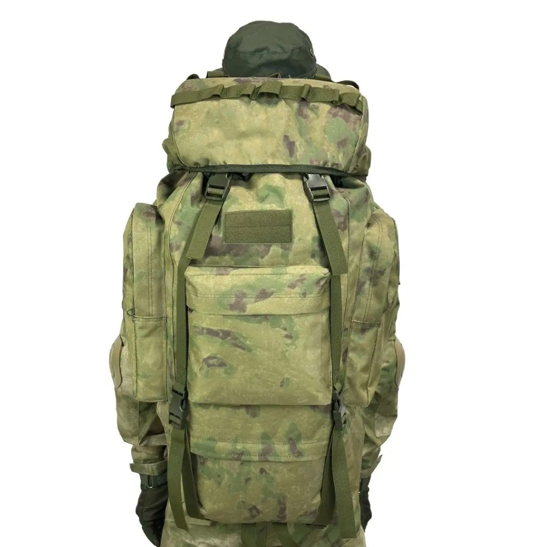 Тактический каркасный рюкзак - предназначен для активного отдыха, военных сборов, походов спорта, охоты рыбалки. В комплекте к большому рюкзаку идет влагозащитный чехол как дополнительная защита от дождя, ветра и механических повреждений. Походный рюкзак может служить как рейдовый, штурмовой и военный. Тактическая походная сумка предназначена для охоты рыбалки. Туристический рюкзак станет незаменимым помощником для людей, увлекающихся туризмом, охотой и рыбалкой, а также для рейдовых и штурмовых заданий. Походный тактический рюкзак сшит из высокопрочной и водоотталкивающей ткани Oxford, а часть рюкзака, прилегающая к спине, лямки и пояс выполнены из дышащего пористого материала, что создает вентиляцию. Все молнии защищены тканевыми клапанами. Внутри спинки рюкзака установлена жесткая металлическая вставка из алюминиевого сплава, которая обеспечивает возможность распределения нагрузки между поясом и лямками. Такая поддержка позволяет использовать тактический рюкзак даже при неполной загрузке. На передней панели рюкзака карман на молнии. 2 накладных кармана на правой и левой стороне так же на молнии. Низ рюкзака можно утянуть при помощи строп. Доступ к рюкзаку можно получить как сверху, так и снизу на молнии, проще говоря его можно разделить на 3 ячейки (очень полезно если нужно достать вещи с дна рюкзака или наоборот). На самом клапане рюкзака, крепление системы Молле и есть стропы для закрепления дополнительного оборудования. Так же на клапане есть 2 кармана на молнии. На спине ручка для переноски рюкзака. Мягкие регулируемые лямки, есть грудная перемычка, 2 полукольца, лямки можно отрегулировать по росту. Есть поясная лямка. Внутри встроен алюминиевый каркас. Прекрасное решение для тактических военно - стратегических игр: пейнтбол и страйкбол хардбол и лазертаг и т.д. Тактический походный рыболовный рюкзак подходит как мужчинам так и женщинам взрослым и подросткам выполнен в стиле унисекс. Пригоден для лета зимы весны и осени является демисизонным походным снаряжением. Поход рыбалка туристическое путешествие или занятие спортом - данная вещь станет незаменимым атрибутом в любой ситуации.