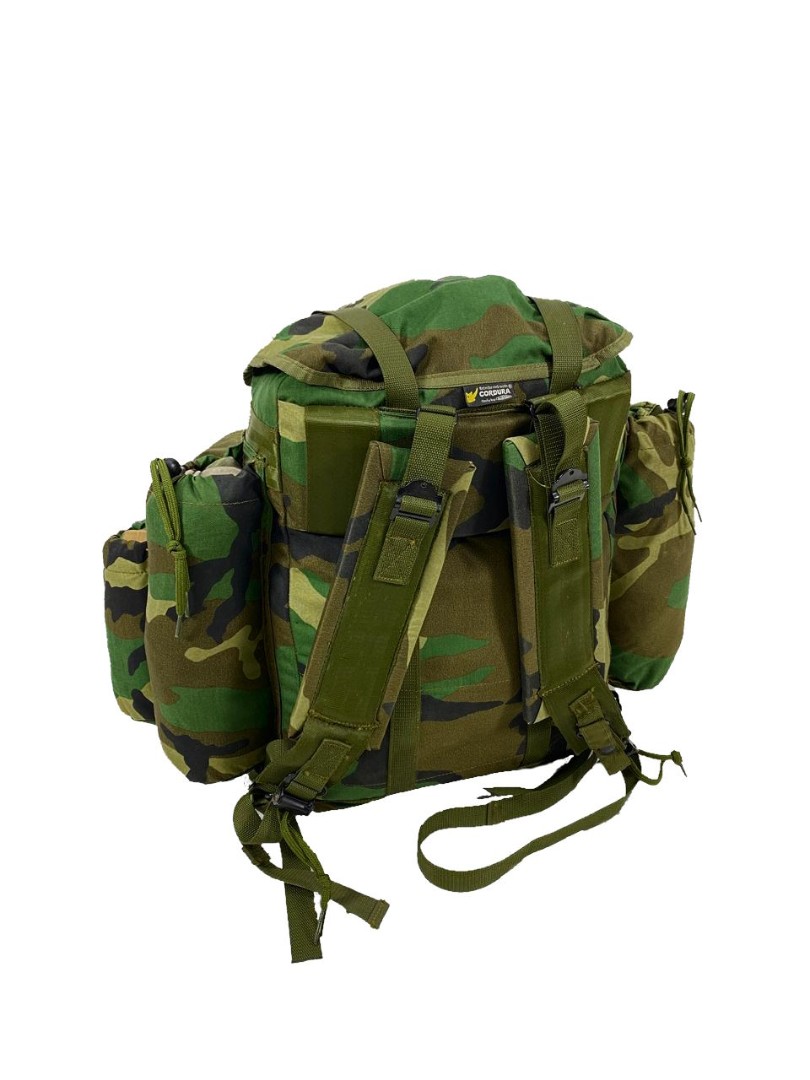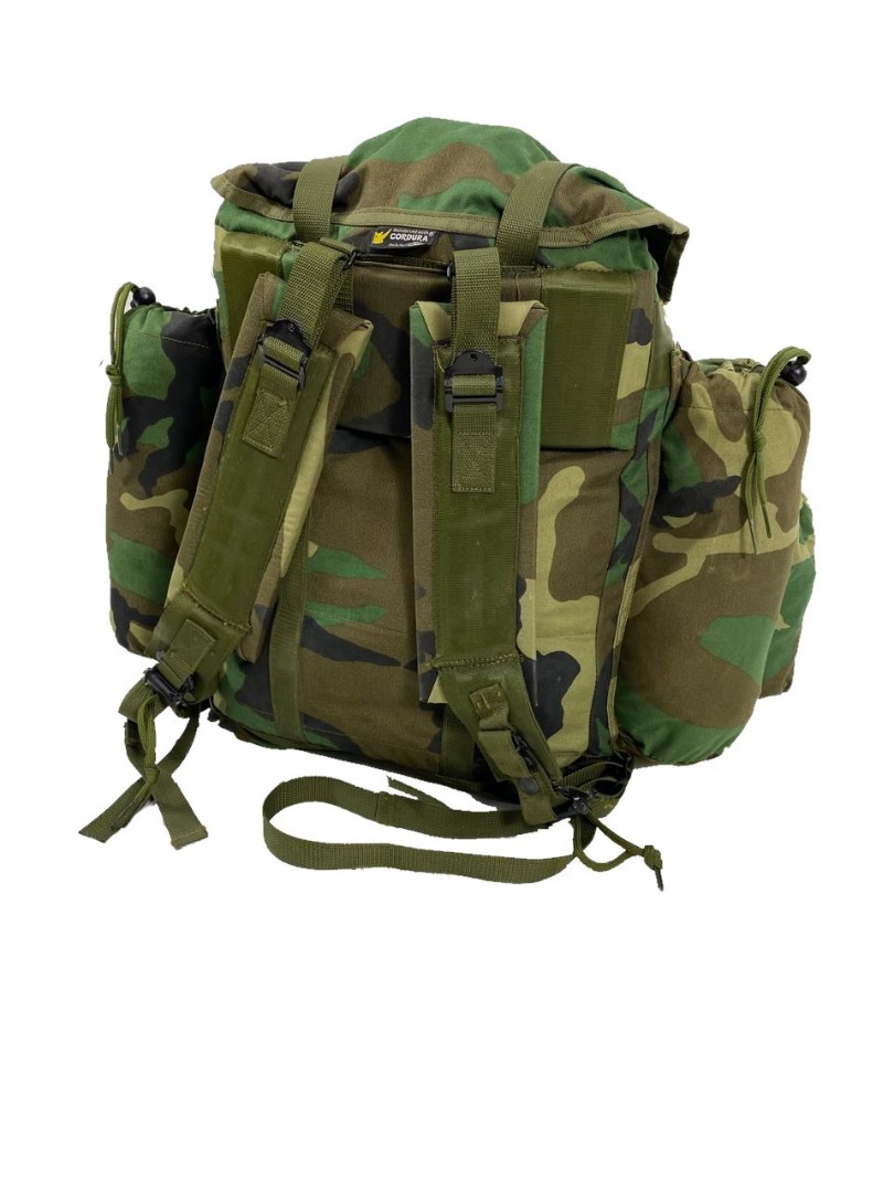 Станковый рюкзак (аналог Американского alice, использовался в войсках армии США. Рюкзак исполнен в камуфляжной расцветке Woodland. Станковый каркас так называемая рама состоит из алюминиевых легких трубок весом в 1.5 кг и размерами 50х30х10.