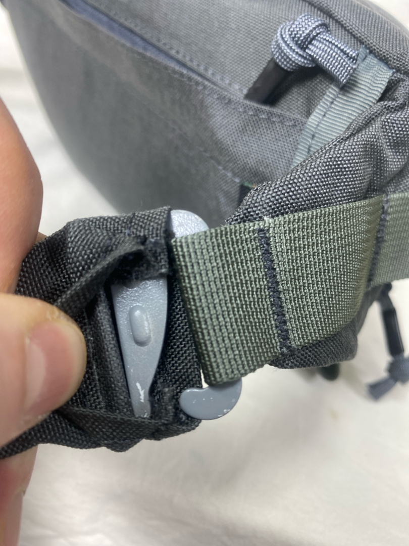 • Ремень крепится к сумке с помощью скрытых металлических карабинов. При необходимости ремень можно снять и прикрепить сумку к поясному ремню.