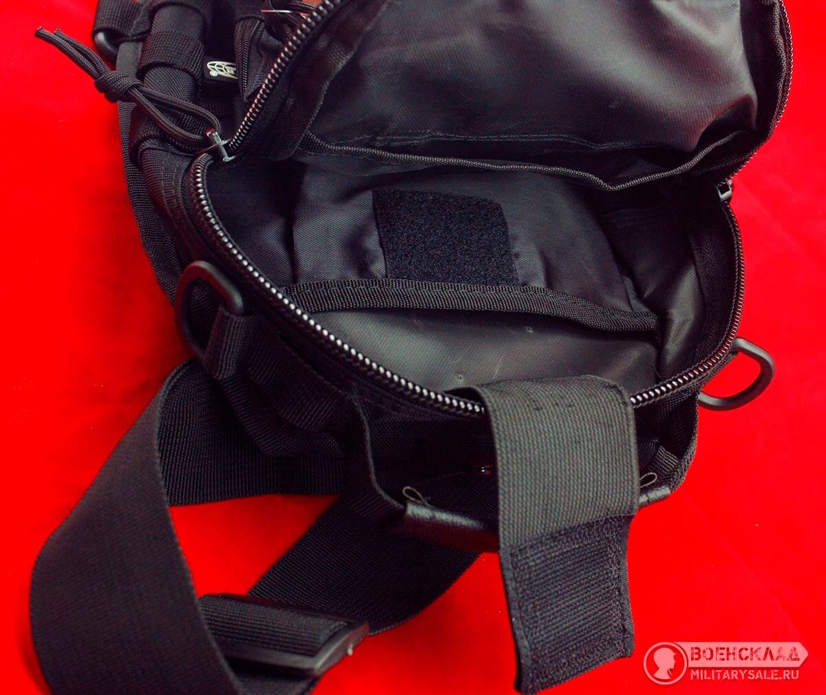 Сбоку на переднем кармане расположено крепление Molle для дополнительного снаряжения.