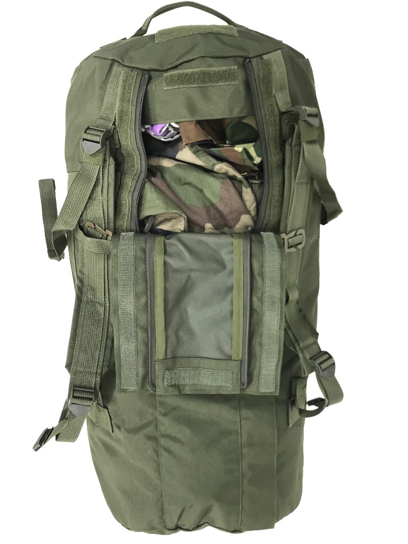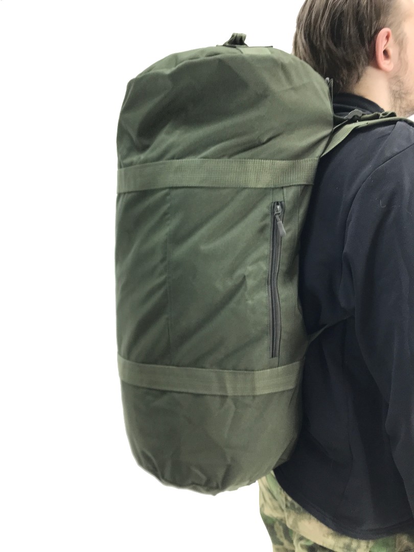 Баул с функцией рюкзака для складирования/транспортировки вещей.Одно большоё отделение закрывается при помощи клапана на двух молниях которые защищены тканью и открываются при помощи липучек.Внутри в боковой,верхней части расположен карман на молнии.Две регулируемые лямки прочно закреплены при помощи дополнительной ткани в верхней и нижней части,нагрудный ремешок фиксирует лямки и при необходимости можно регулировать высоту ремешка.В боковой части рюкзак расположен небольшой карман на молнии.С двух сторон на бауле расположены крепкие,тканевые ручки для удобства переноски.