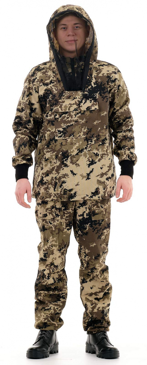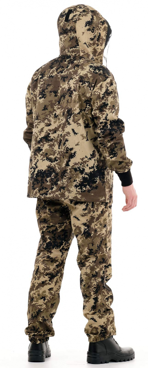 Костюм «Антигнус» в расцветке серая цифра представляет собой классический противоэнцефалитный костюм. Он состоит из куртки типа «анорак» с капюшоном и брюк прямого кроя.
