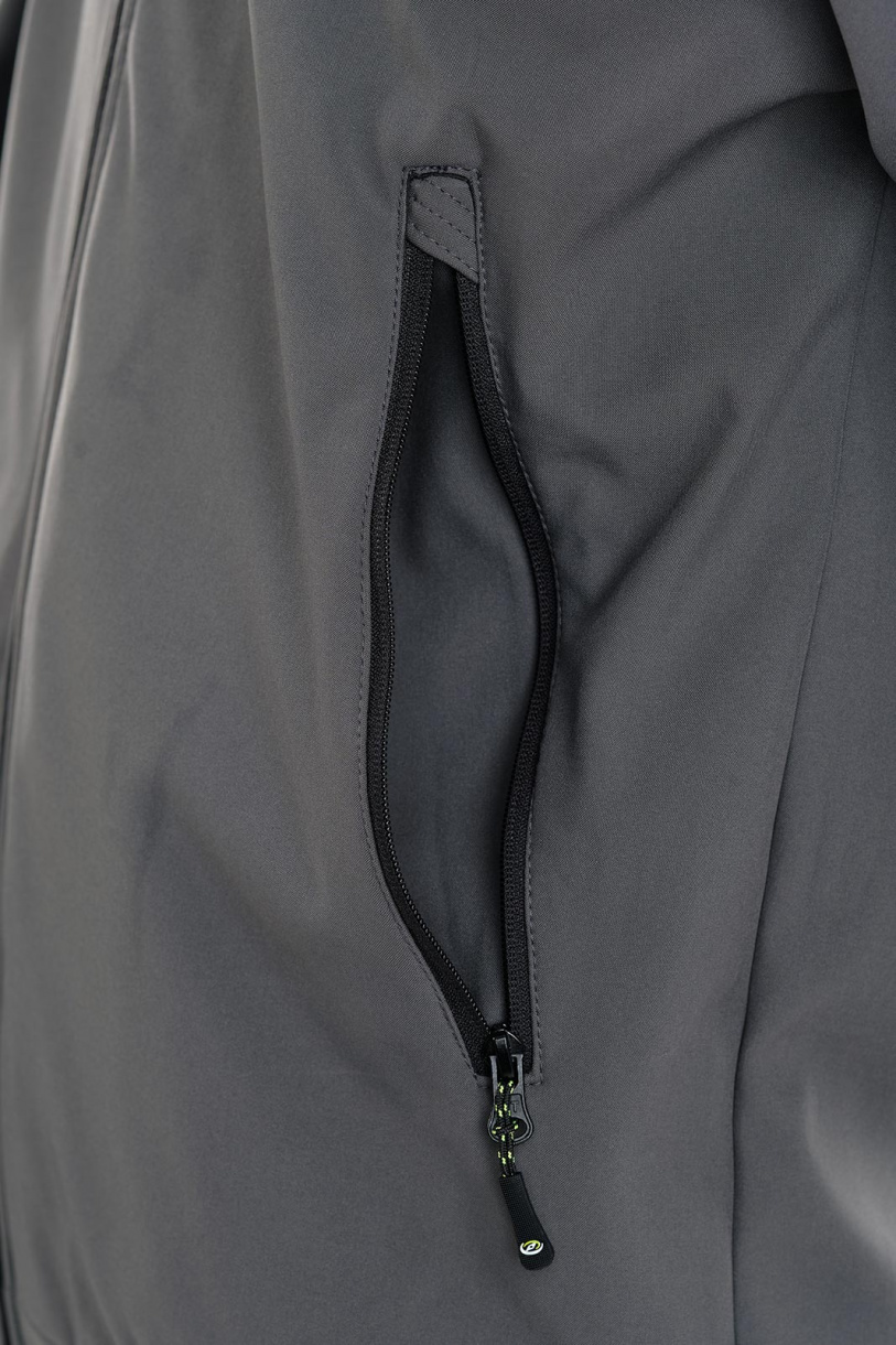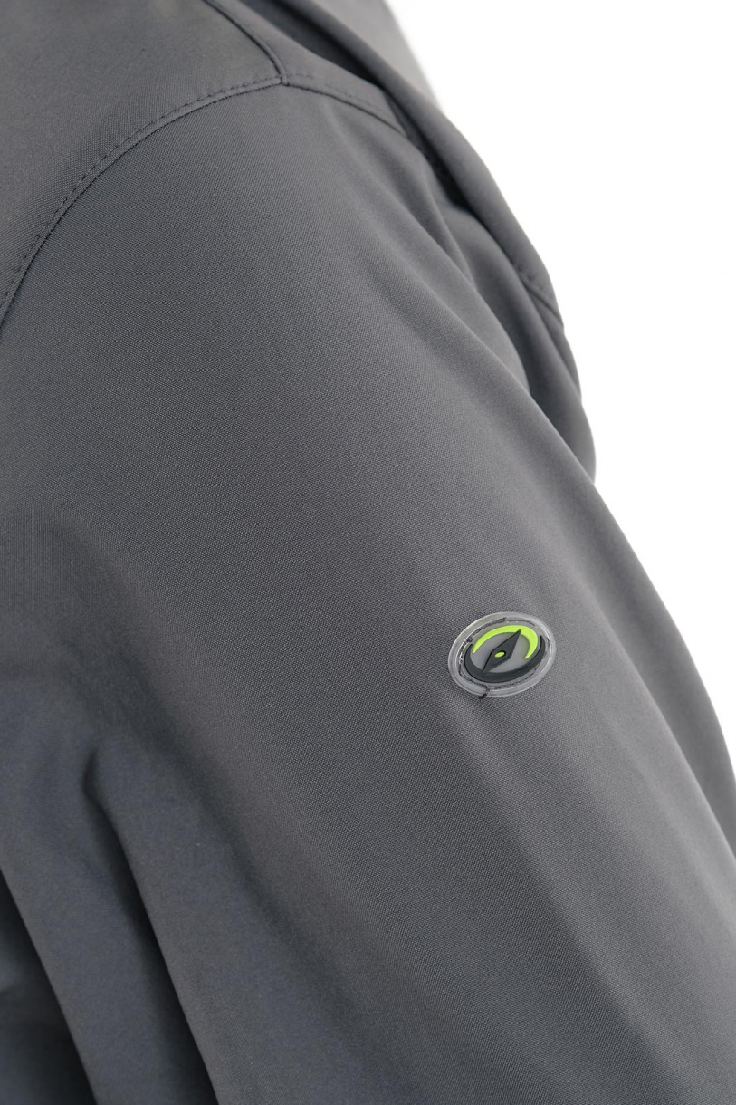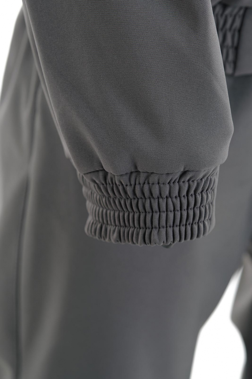 Низ укороченной куртки собран на широкую простроченную резинку, обеспечивая комфортное прилегание по бедрам. Капюшон регулируется по овалу лица. Застежка-молния защищена внутренней ветрозащитной планкой. Манжеты рукавов снабжены широкой резинкой, которая не передавливает и не натирает кожу, и в тоже время достаточно плотная, чтобы не пропускать ветер. На куртке два верхних накладных кармана с клапанами на кнопках и два нижних прорезных с листочками без застежки.