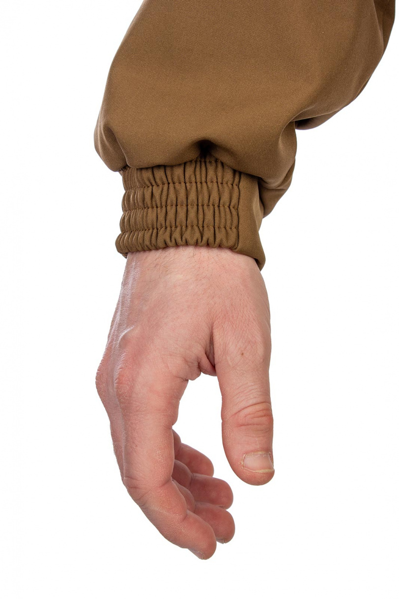 Низ укороченной куртки собран на широкую простроченную резинку, обеспечивая комфортное прилегание по бедрам. Капюшон регулируется по овалу лица. Застежка-молния защищена внутренней ветрозащитной планкой. Манжеты рукавов снабжены широкой резинкой, которая не передавливает и не натирает кожу, и в тоже время достаточно плотная, чтобы не пропускать ветер. На куртке два верхних накладных кармана с клапанами на кнопках и два нижних прорезных с листочками без застежки.