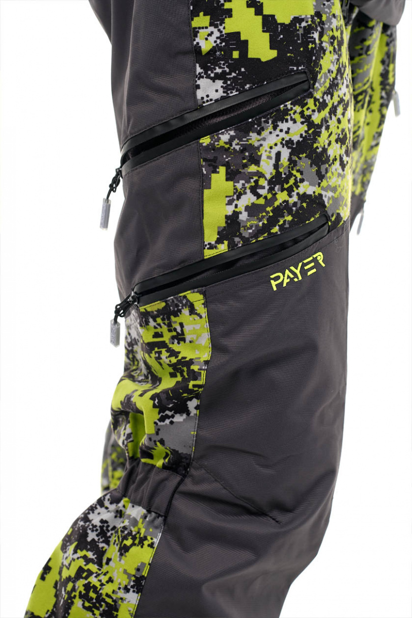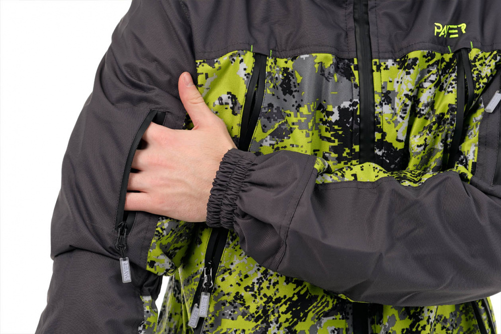 Все карманы прорезинены. Два на куртке застегиваются на молнию и разделены на два специальной перегородкой. Также есть небольшие карманы на рукавах и на боковых сторонах брюк.