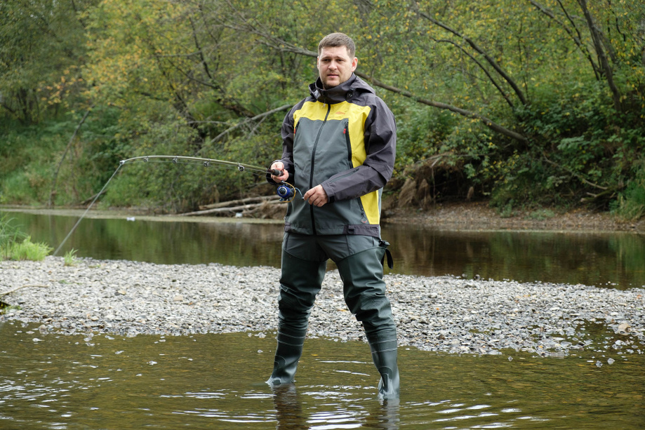 Костюм «Фиш Про» (ТМ GRAYLING) разработан специально для забродной рыбалки. Костюм изготовлен из уникального материала – трехслойной мембраны. На гладкую и прочную нейлоновую ткань вторым слоем нанесена пленка мембраны. Третьим изнаночным слоем идет прочная сетка, служащая для усиления и защиты мембраны от повреждений. Таким образом, исключается наличие подклада, что является большим плюсом для забродной рыбалки – костюм легче и быстрее сохнет. Все швы проклеены, все молнии прорезинены.