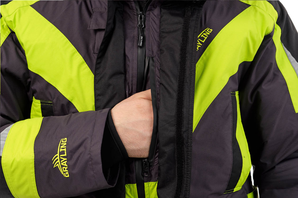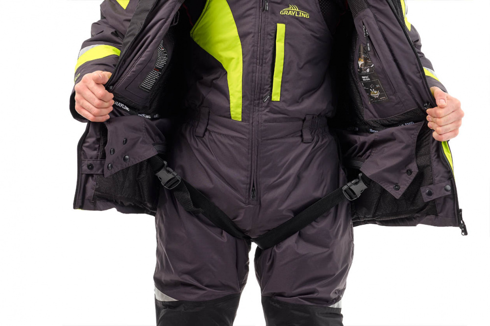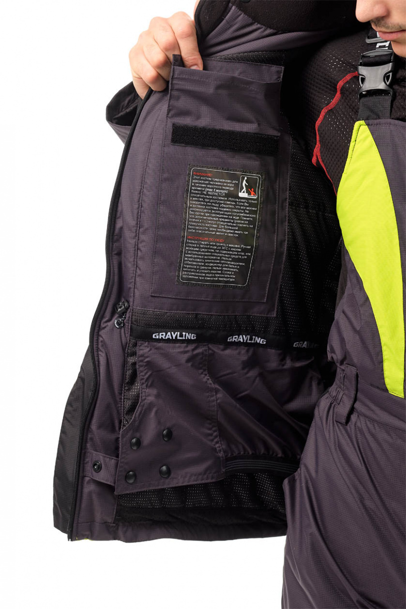 Костюм «Флагман-поплавок» (ТМ GRAYLING) - новинка в рыболовной линейке костюмов от компании Novatex. Специальное наполнение костюма позволяет удержаться на воде в течении короткого периода времени, при этом совершенно не стесняя движений. По низу куртки, рукавов и брюк имеются вставки из сетки для быстрого отвода воды. В специальном нагрудном кармане - свисток яркого оранжевого цвета.