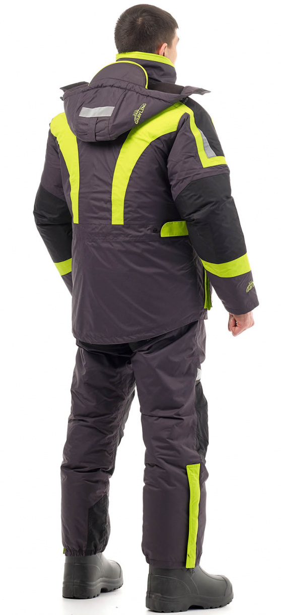 Толщина утеплителя костюма рассчитана на достаточно сильные морозы – температура комфорта минус 25 градусов, экстремальная температура использования – минус 45 градусов. Мембранная ткань защитит от ветра, а фольгирован