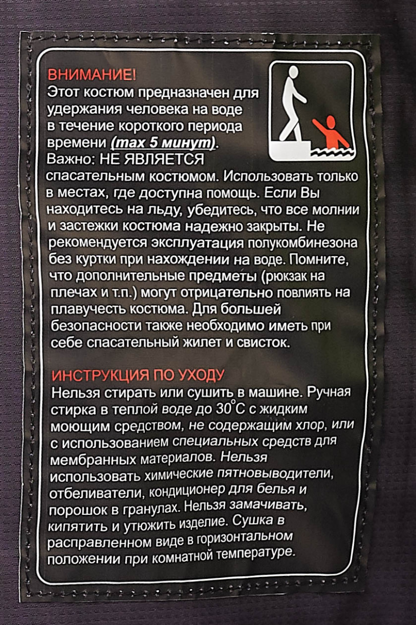 Подклад: фольгированный подклад (в теле куртки, 100% ПЭ, плотность 60 г/кв.м), таффета (скользящий подклад в брюках и рукавах, 100% ПЭ, плотность 60 г/кв.м), флис (в капюшоне, воротнике, 100% ПЭ, плотность 130 г/кв.м), вельбоа (в карманах, 100% ПЭ, плотность 150 г/кв.м)