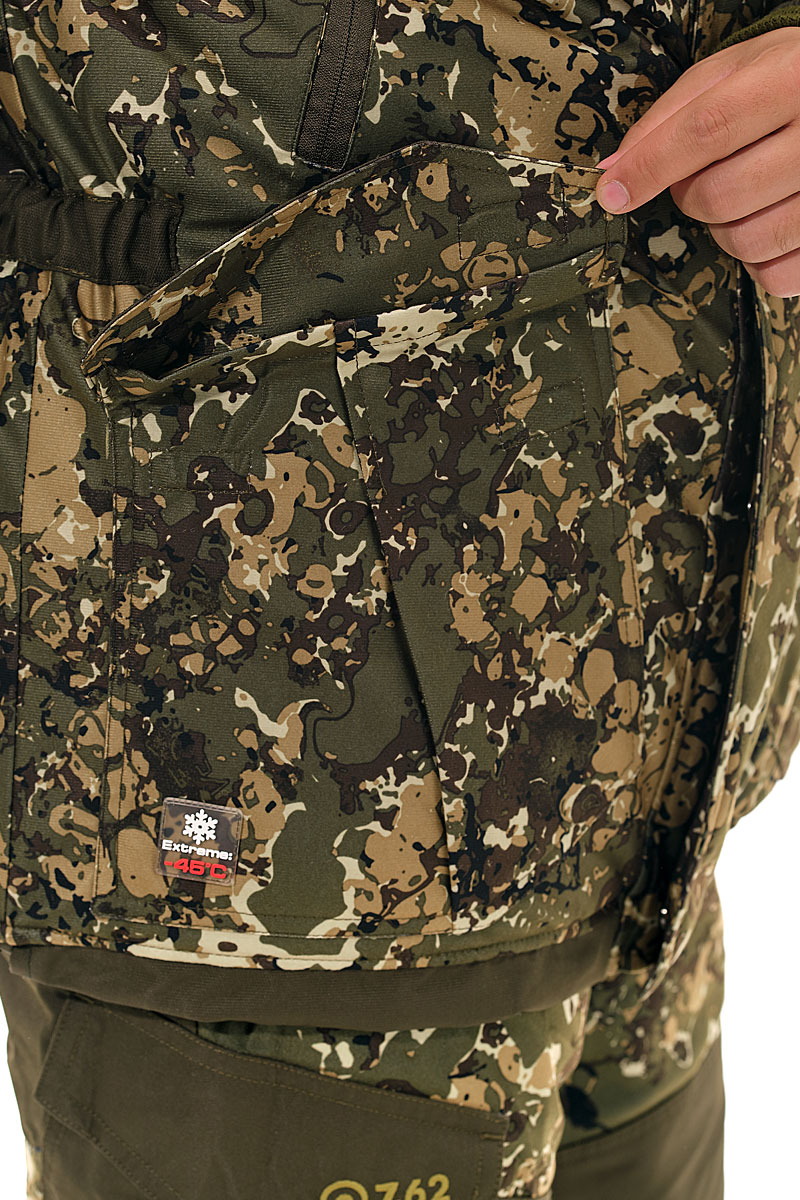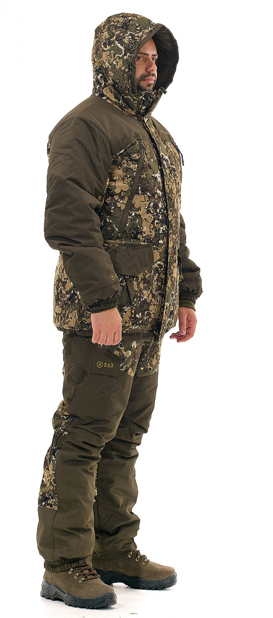 Костюм «Горка» Зима (ТМ «7.62») - разработан на основе знаменитого военного костюма «Горка». В этом костюме гармонично сочетается проверенный временем анатомический крой и современные материалы. Современная мембранная ткань алова обладает отличными ветро- и влагозащитными свойствами, а качественный утеплитель термотекс дает ощущение комфорта при морозе в 30 градусов. Температура экстрим минус 45 градусов.