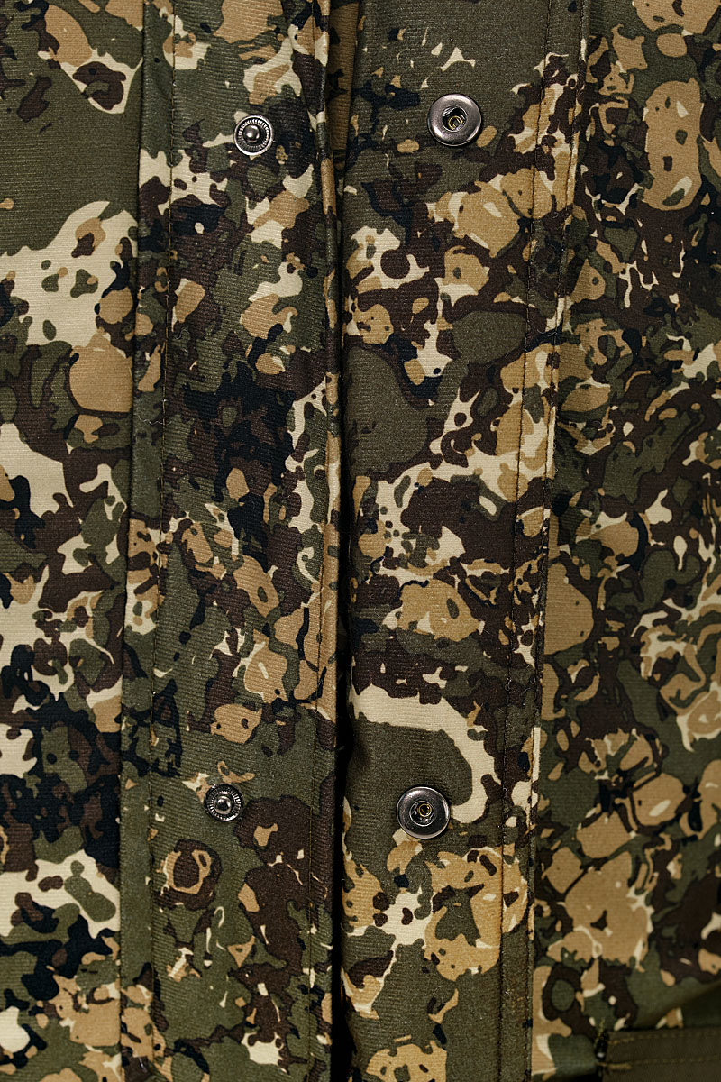 Удлиненная куртка собрана в области талии по бокам на кулисы с резинками. Низ куртки регулируется шнуром с фиксаторами по бокам. Также препятствуют проникновению холода двойная ветрозащитная планка,