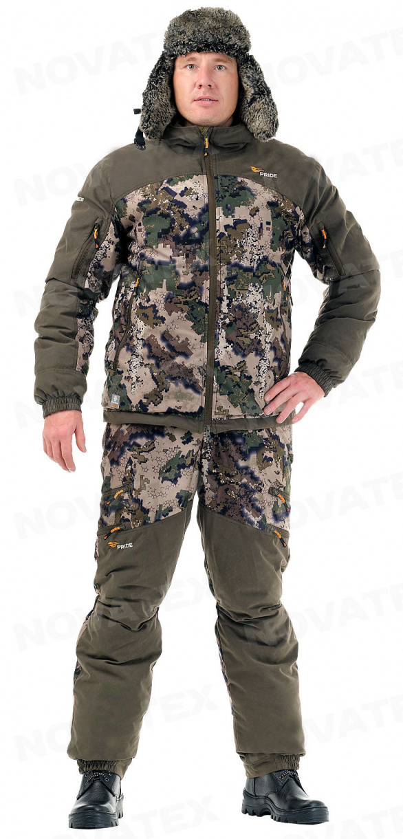Утепленный демисезонный костюм «Кобра» (ТМ PRIDE) сконструирован специально для условий ходовой охоты. Нетолстый слой утеплителя определяет комфортный температурный режим от ноля градусов и ниже, температура экстрим минус 15 градусов. Для пошива этого костюма использовалась бесшумна ткань алова и специальные влагозащищенные нити COATS, препятствующие проникновению влаги в швах изделия. Все наружные молнии костюма влагозащищенные.