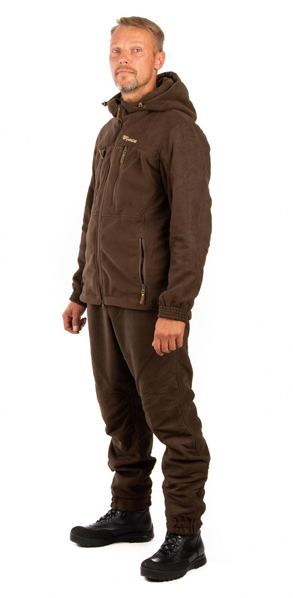 Флисовый костюм Yakut (Якут) выполнен из плотного флиса с усилениями из искусственной замши в местах повышенного износа. Флисовый костюм можно использовать как эффективный утепляющий слой под мембранную одежду для очень холодной погоды, а также применять как самостоятельное изделие в прохладную безветренную погоду. За счет комфортности материала костюм Yakut будет оптимальным выбором для отдыха в перерывах между охотой.