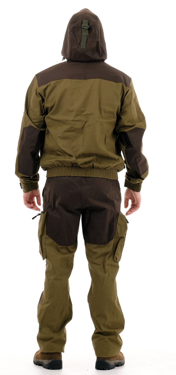 Костюм изготавливается из надежной, проверенной временем хлопковой ткани палатка. Это 100% натуральная ткань прекрасно защищает от ветра, почти мгновенно сохнет, пропускает воздух, позволяя телу «дышать».