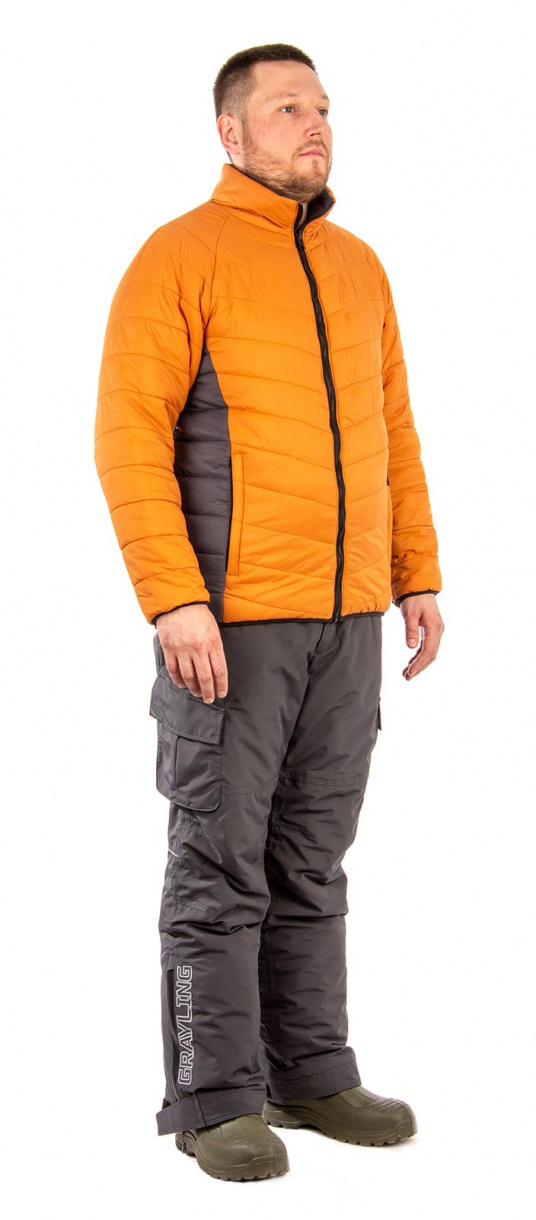 Зимний рыболовный костюм Riverside в цвете серый-горчица с дополнительной двухсторонней курткой-подстежкой, которая может использоваться как самостоятельное изделие.