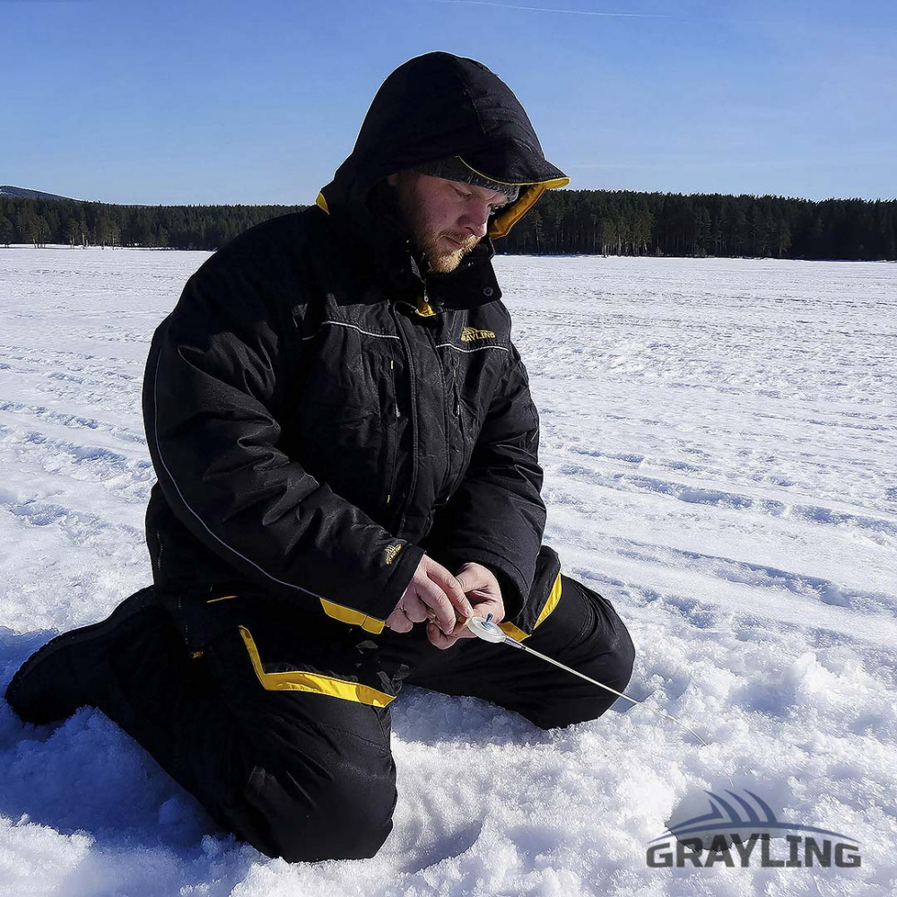 Костюм «Селигер» (ТМ GRAYLING) относится к элитной рыболовной экипировке. Универсальный зимний костюм специально адаптирован для людей, активно увлекающихся рыбалкой. Костюм состоит из длинной куртки и полукомбинезона анатомического кроя. Для изготовления костюма «Селигер» применяют особо прочную современную нейлоновую ткань «кошачий глаз» с мембранным покрытием. Для отделки и армирования используется двойной слой ткани. Защита от холода достигается за счет применения современного утеплителя термотекс - температура комфорта минус 30 градусов, температура экстрим минус 45 градусов. Фольгированный подклад нового поколения обеспечивает оптимальный микроклимат: фо