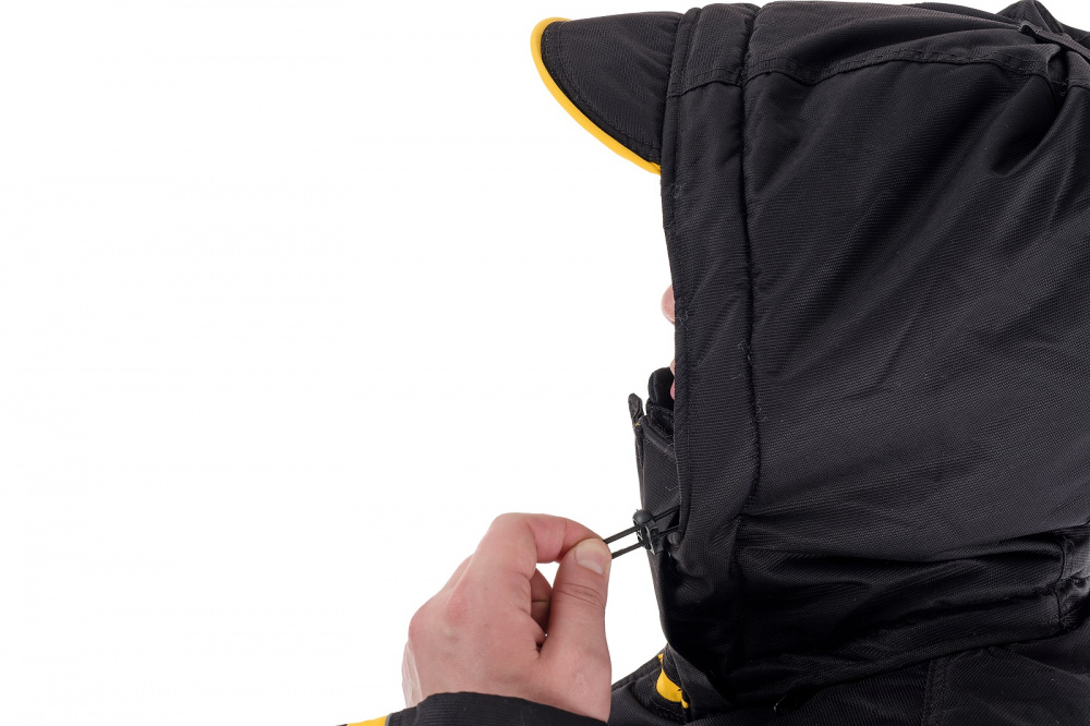 Подклад: фольгированный подклад (в теле куртки, 100% ПЭ, плотность 60 г/кв.м), таффета (скользящий подклад в брюках и рукавах, 100% ПЭ, плотность 60 г/кв.м), флис (в капюшоне, воротнике и карманах, 100% ПЭ, плотность 130 г/кв.м)