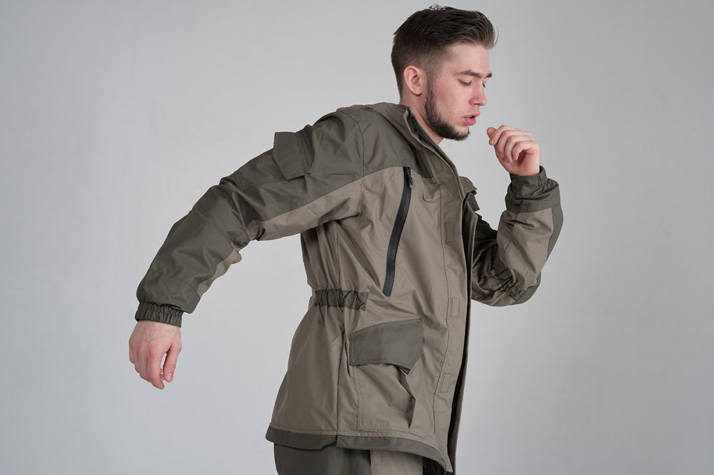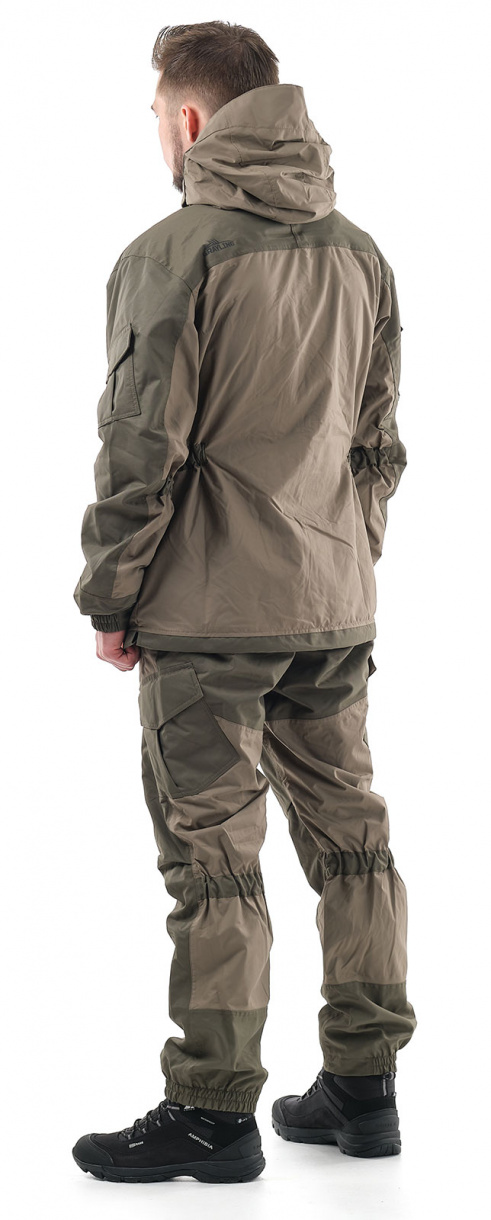 Для отделки и армирования используется мембранная ткань «кошачий глаз», которая обладает повышенной износоустойчивостью: плечи, локти, клапаны карманов, низ брюк и манжеты рукавов, застежка брюк, а также передняя часть брюк от выше колена и верхняя задняя часть брюк.