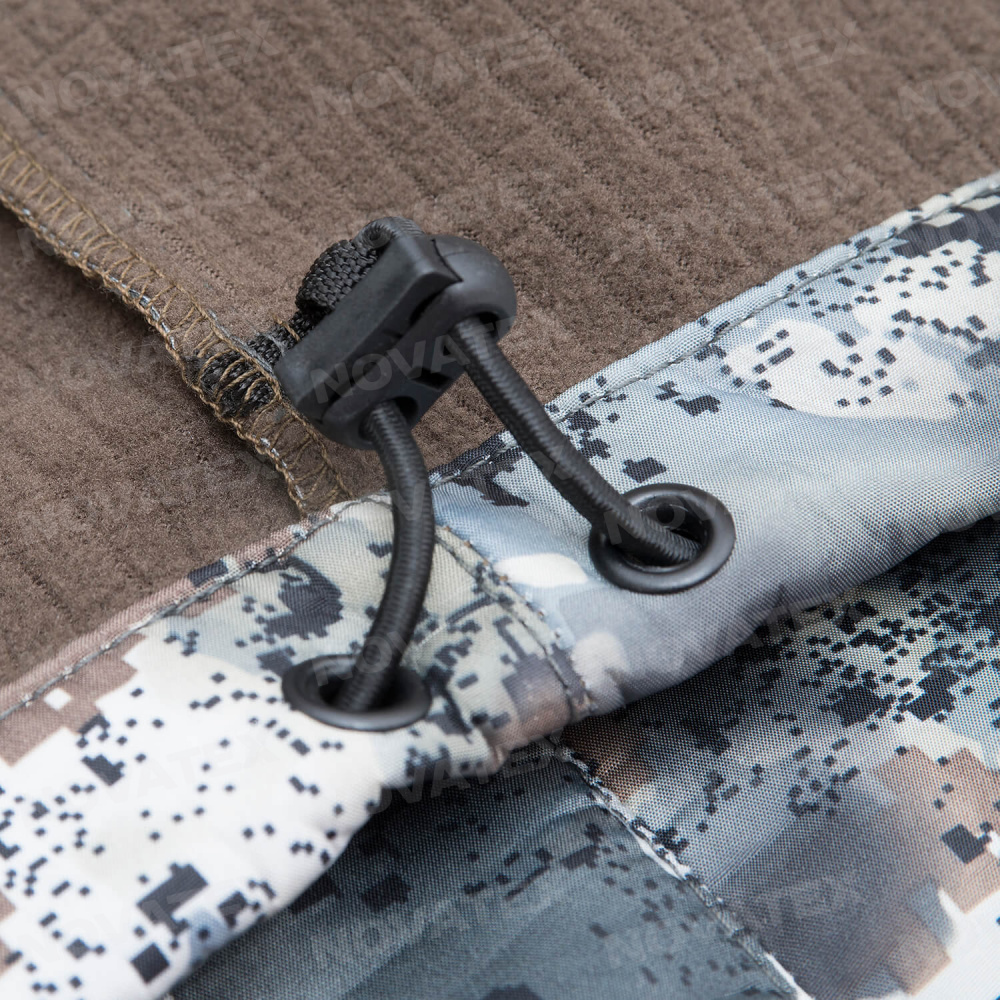 Подклад: алова без мембранного покрытия (в теле куртки, капюшоне, верхней части брюк, 100% ПЭ, плотность 110 г/кв.м), скользящая ткань таффета (в рукавах и брюках ниже колена, 100% ПЭ, плотность 60 г/кв.м)