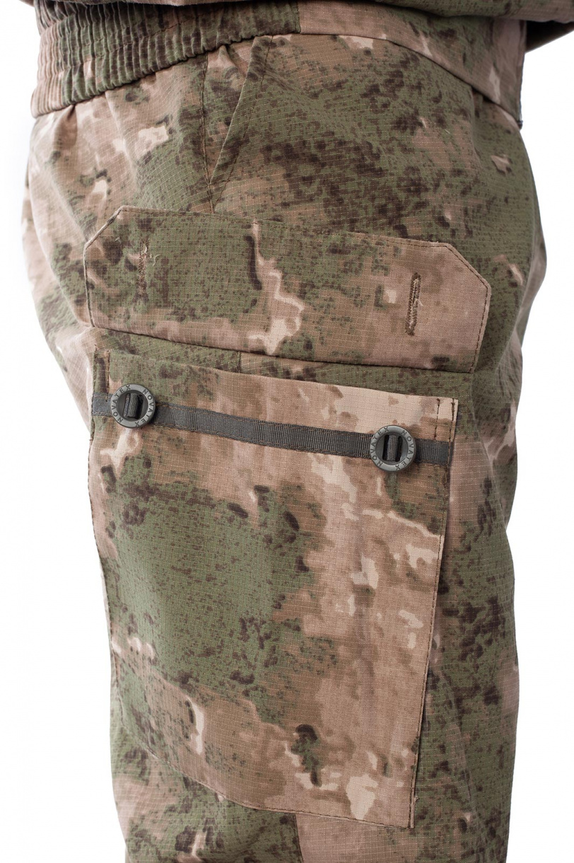 Костюм «Спецназ» (ТМ КВЕСТ) относится к линейке летних маскировочных костюмов. Для изготовления костюма использовалась смесовая ткань: дышащая, легкая и в то же время прочная, износостойкая, устойчивая к разрыву благодаря переплетению рип-стоп.