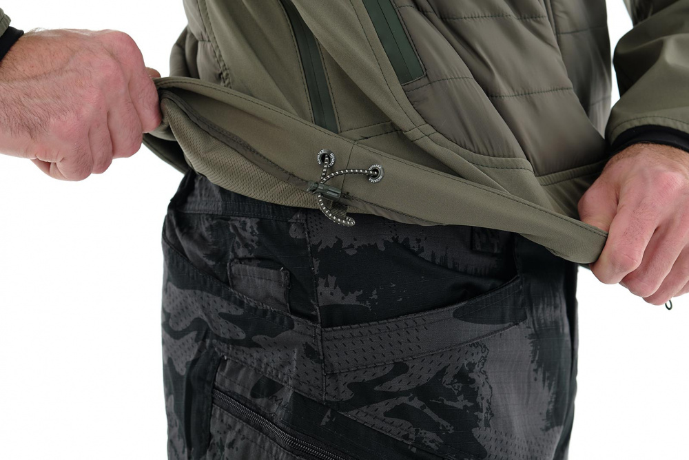 На куртке присутствуют вентиляционные отверстия. Они смещены к низу, располагаются ниже обычного, и выполняют дополнительную функцию быстрого доступа к карманам предыдущего слоя,