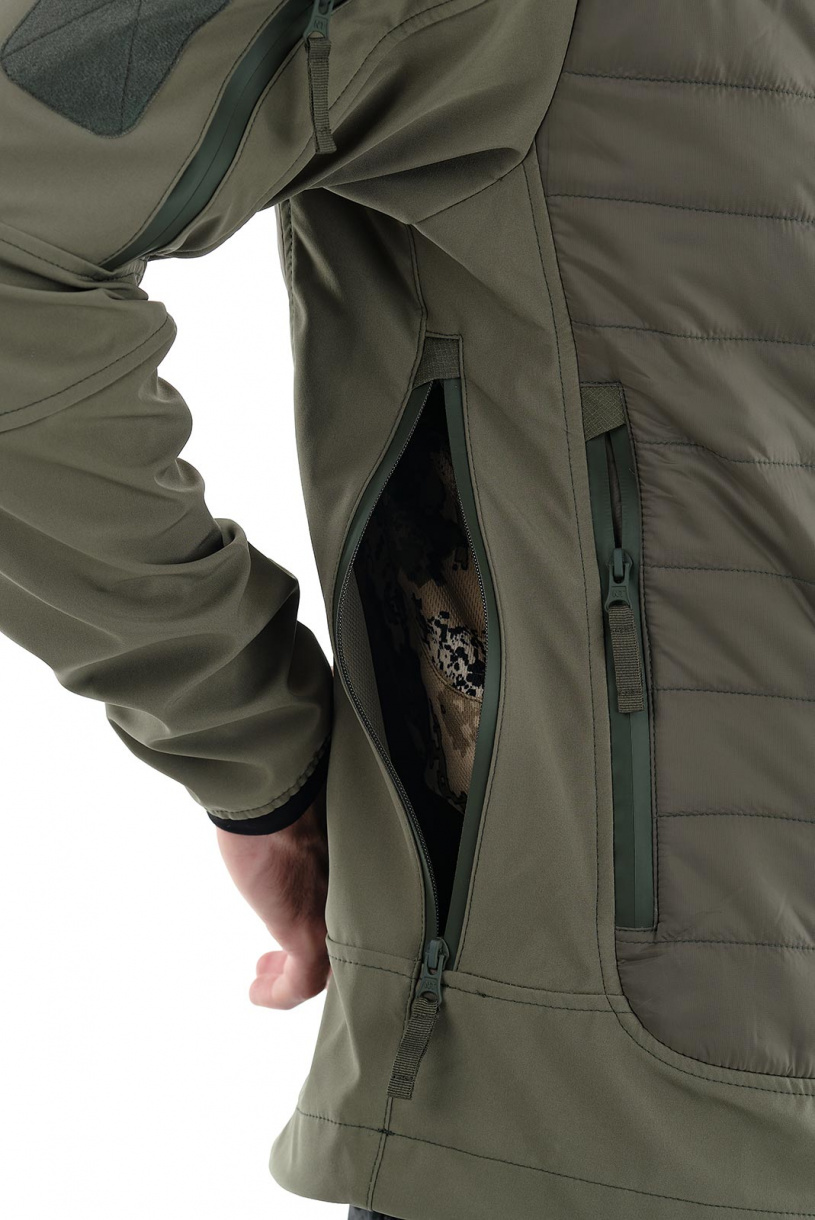 С внешней стороны куртки можно заметить 2 вместительных кармана спереди, 2 на плечах (с велкро липучками под шевроны), внутри куртки нашлось место двум карманам на молниях и двум навесным.