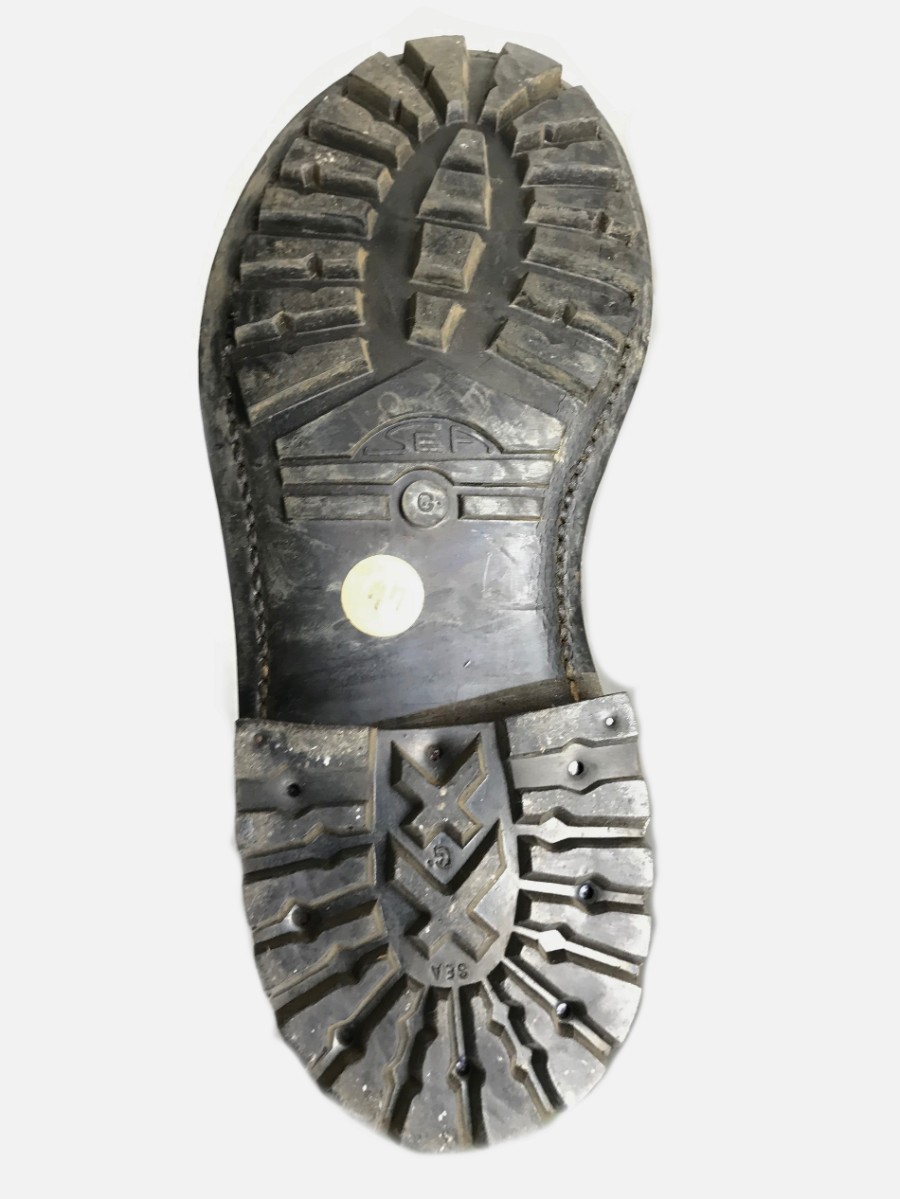 Эти ботинки оригинал, со склада хранения,их выпускали из натуральной толстой воловьей кожи, ботинки для войны, настоящая находка для ценителей хорошей обуви. Каштановую модель выпускали всего 6 лет с 1958 по 1964 год и больше никогда, а чёрная модель задержалась в армии аж на 50 лет, благодаря своей простоте и надёжности. Если вы человек, который склонен к рискованным и необдуманным поступкам, рассчитанный на лёгкий случайный успех, легкомысленный и беспринципный путешественник любящий стиль милитари, то эти ботинки для вас.Мягкий и тонкий, без амортизации, кожаный язычок у французских ботинок сшит из двух частей, а расположенный посередине шов прикрыт дополнительной полоской кожи. Клапан язычка - полуглухой.