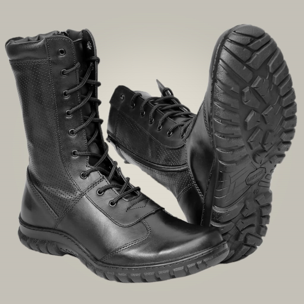 И вновь классика в современном исполнении. Летние берцы из натуральной кожи поразят своей легкостью и воздухопроницаемостью. За счет чего они обладают такими качествами. Берцы изготовлены не просто из натуральной кожи, а из перфорированной кожи. Такая обработки кожи самая практичная для летней носки.