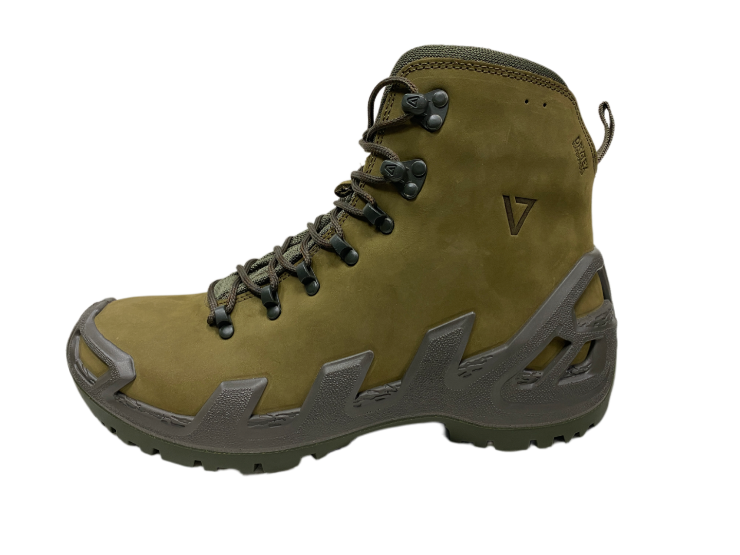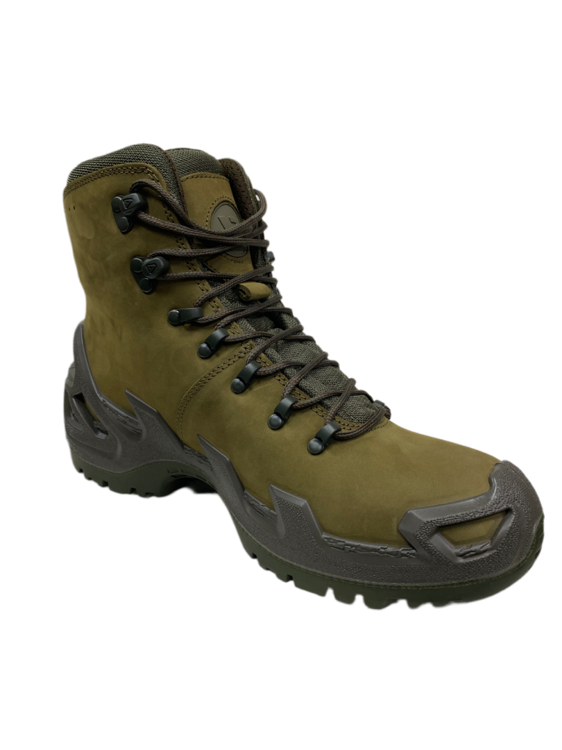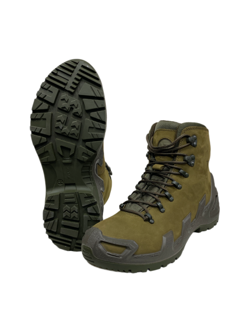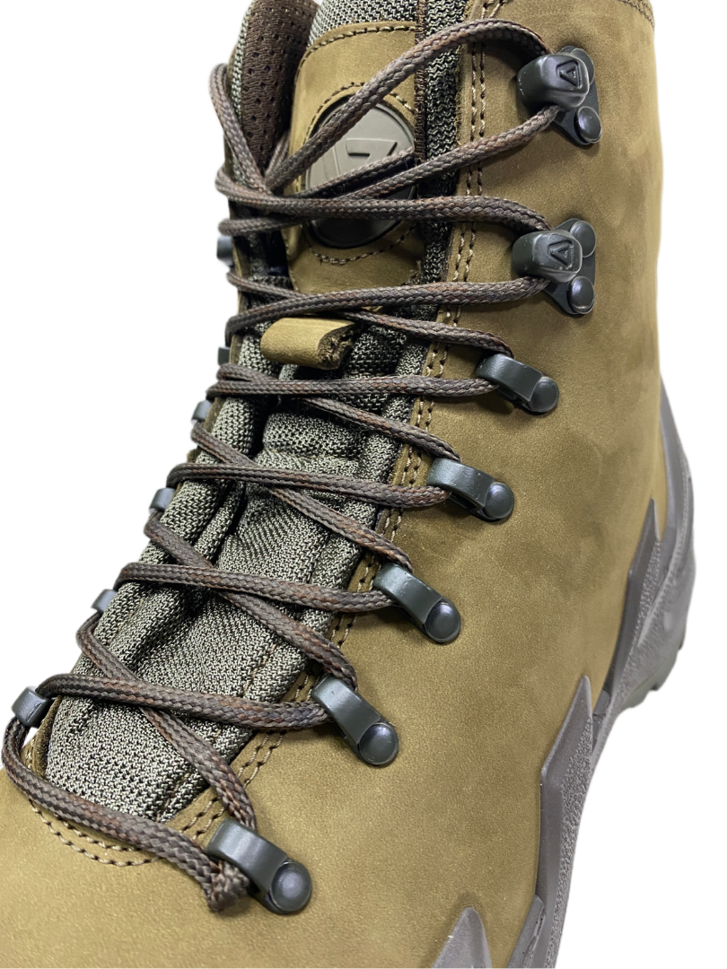 - Внешняя сторона ботинка выполнена из качественной нубуковой кожи, а язычок и верх берца — из Cordura (полиамид 6.6);