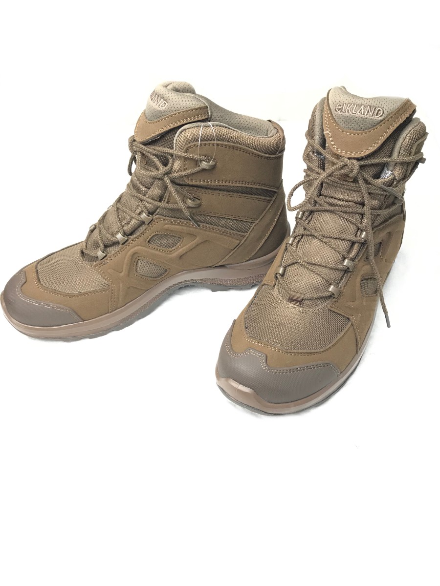 Треккинговые ботинки фирмы «ELKLAND» изготовлены из водостойкого полиэстера и микрофибры высокой плотности. Внутренняя часть ботинка выполнена из синтетических нитей – Mesh, а также мембранной ткани, которые позволяют ногам оставаться сухими даже в очень влажную погоду, а также быть комфортными в носке при температуре от 0 до + 30 градусов.