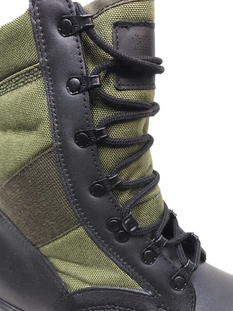 Летние, облегченные берцы для жаркого и влажного климата. Произведены в Германии для армии. Носок, пятка, ранты и задняя петля для быстрой шнуровки выполнены из гидрофобной натуральной кожи. Верх - легкая, дышащая и очень прочная кордура. Внутри сетчатая подкладка, способствующая эффективному отводу влаги, с функциями терморегуляции. Полиуретановая подошва средней жесткости - прочная, легкая, устойчивая к износу, антистатическая и масло-бензостойкая. Глубокий рисунок протектора и конструкция подошвы обеспечат жесткую сцепку с поверхностью. Потенциально травмоопасные места - пальцы ног, пятки, ступни, защищены за счёт усиления кожы. Сзади ботинка предусмотрена кожаная петля для поддержания оборачиваемых вокруг шнурков. Клапан язычка глухой, пришит по всей длине, что обеспечивает защиту от попадания внутрь пыли, песка, мелких камней. Фиксирующий крюк-зажим и 6 люверсов быстрой шнуровки от компании "MARK". По бокам располагаются металические, вентилируемые люверсы , позволяют быстро выводить попавшую внутрь воду, сушить и вентилировать внутреннюю часть ботинка