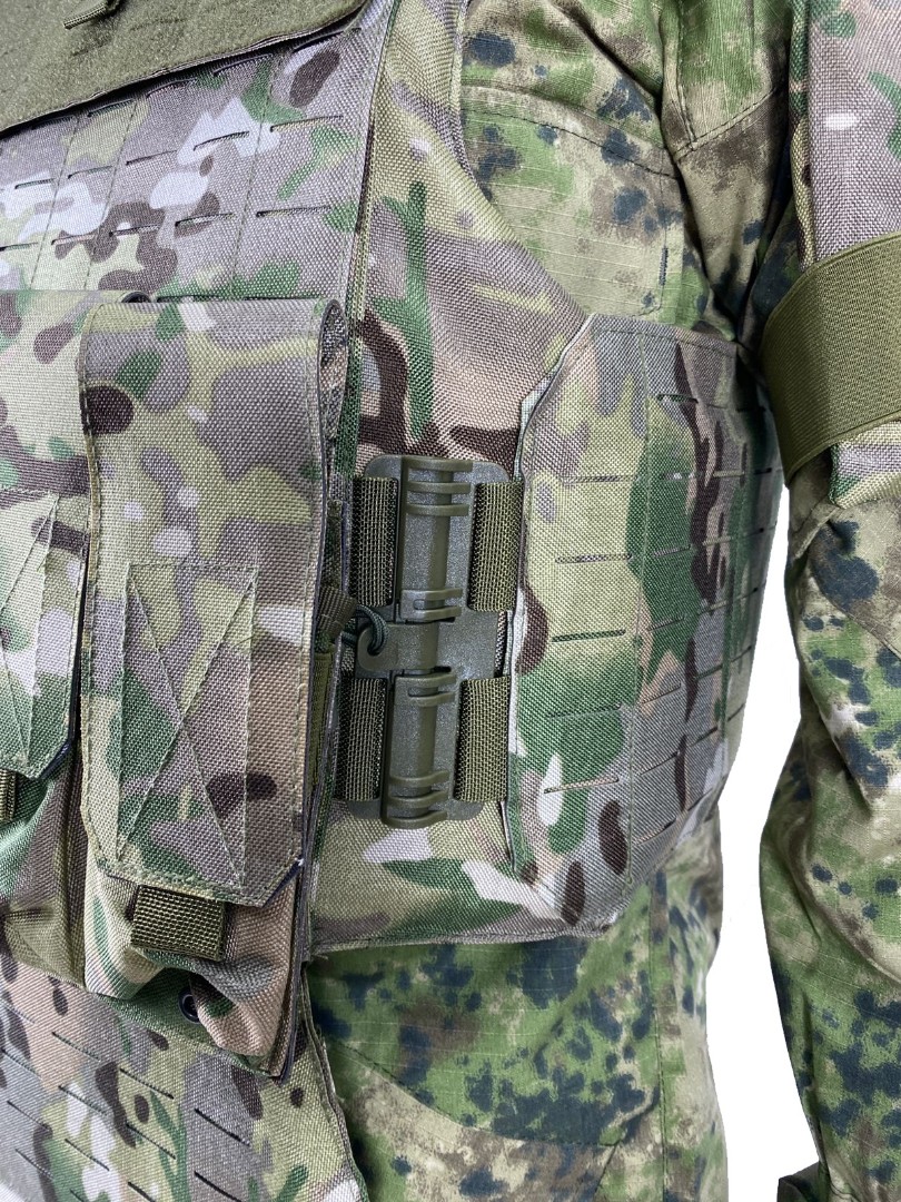 MOLLE/PALS-система: Лазерная нарезка петель снижает вес жилета и позволяет крепить тактическое снаряжение (подсумки, аптечки, фляги, рации).