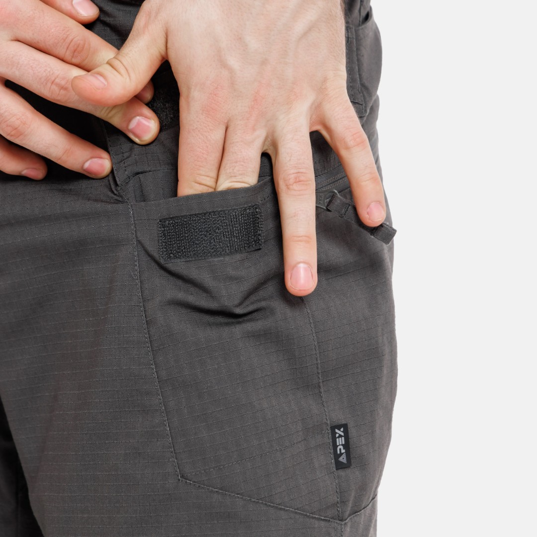 Края карманов усилены, чтобы выдерживать постоянное скольжение зажимов для фонарей и ножей.